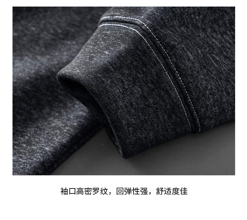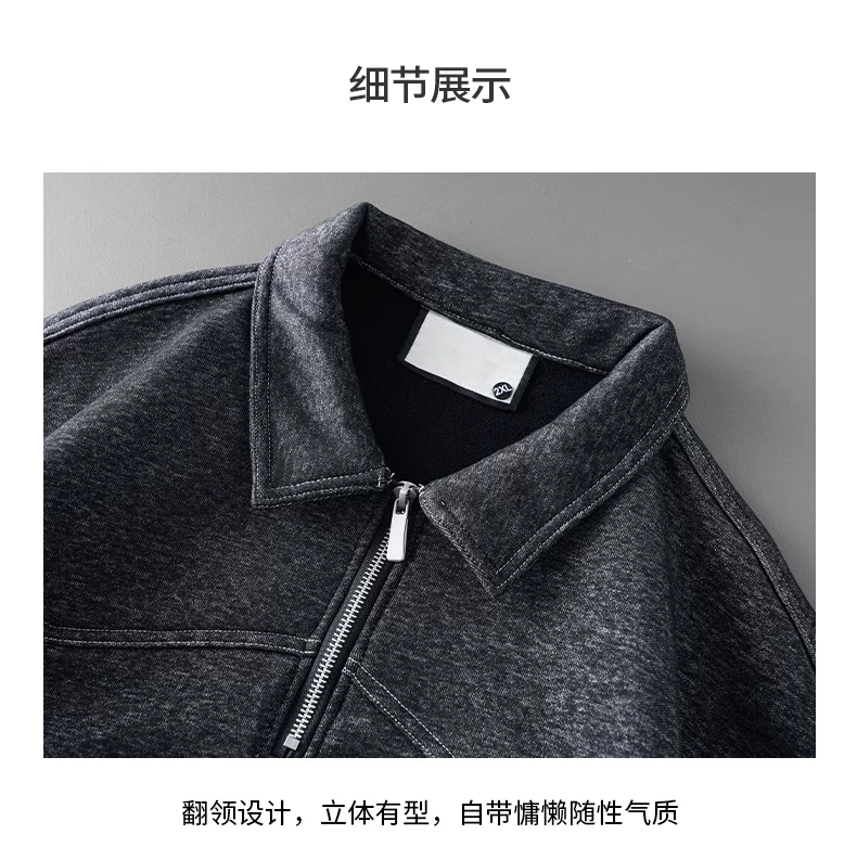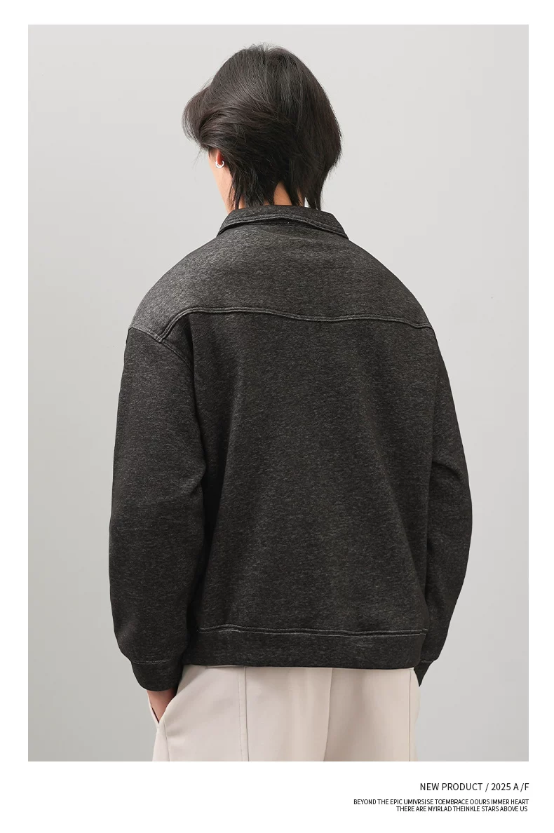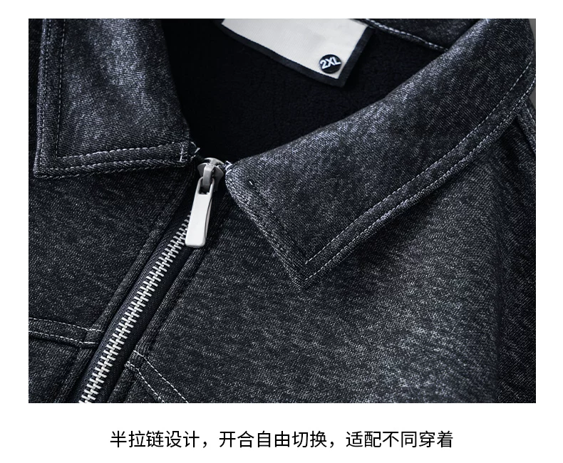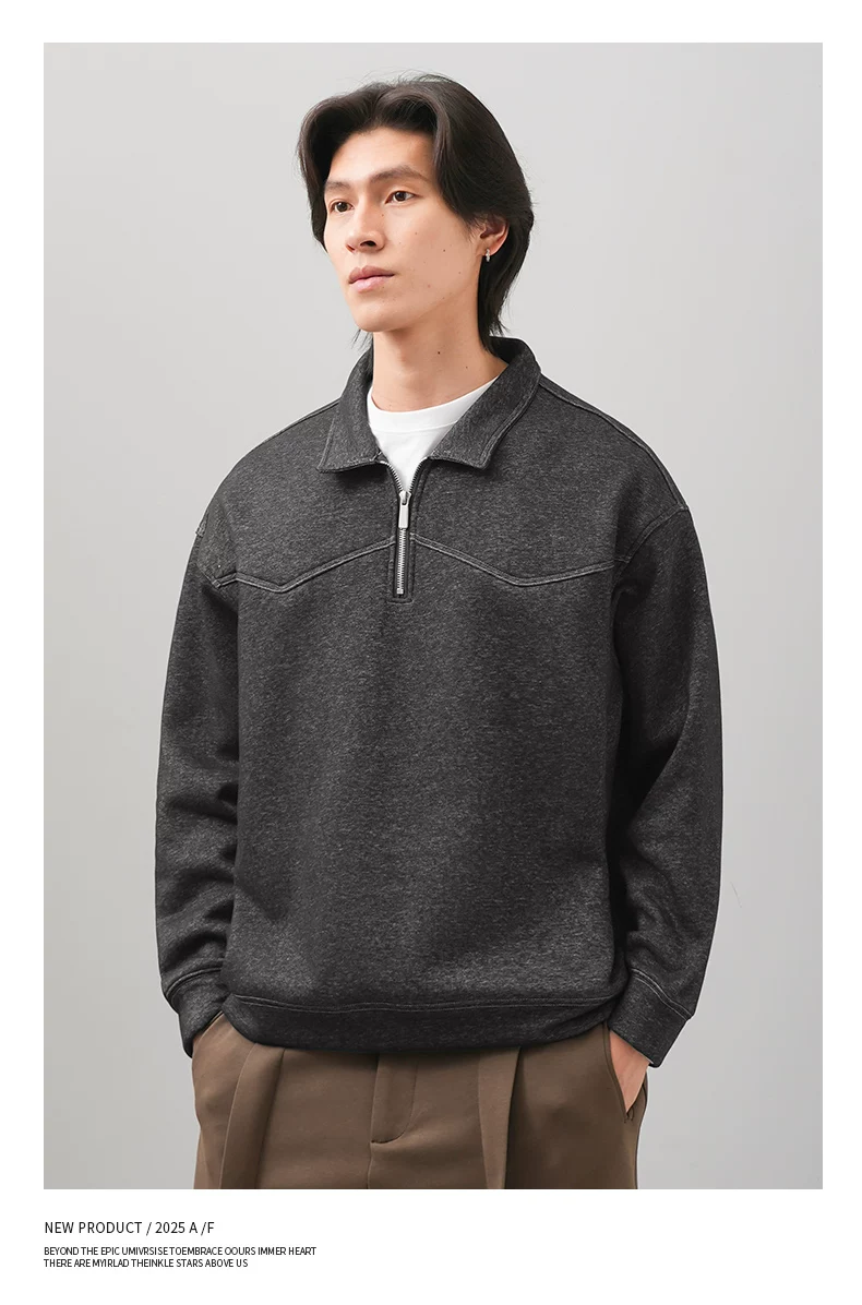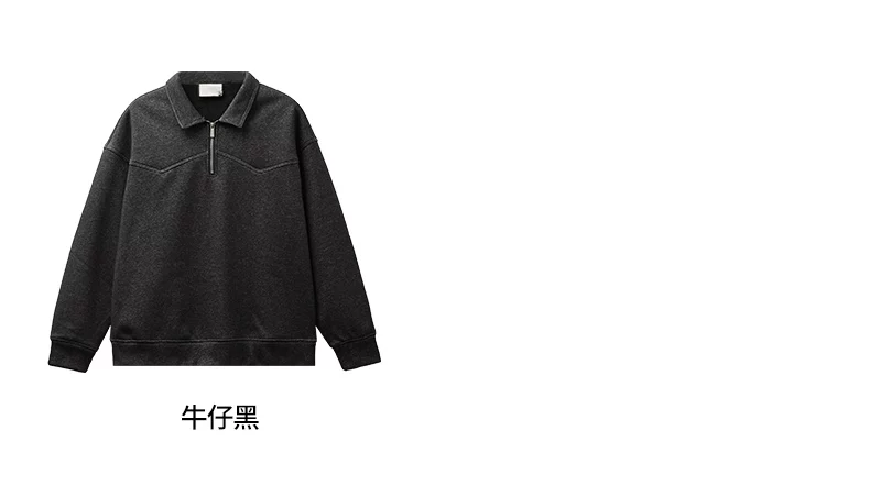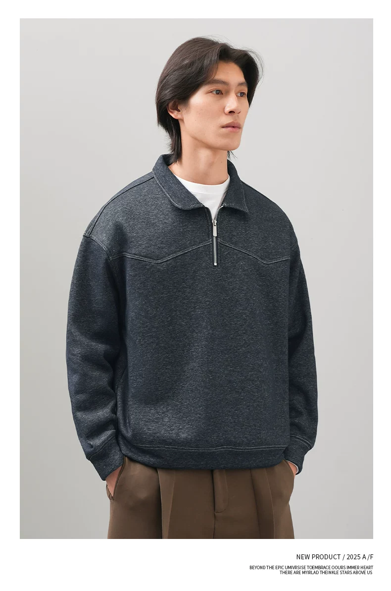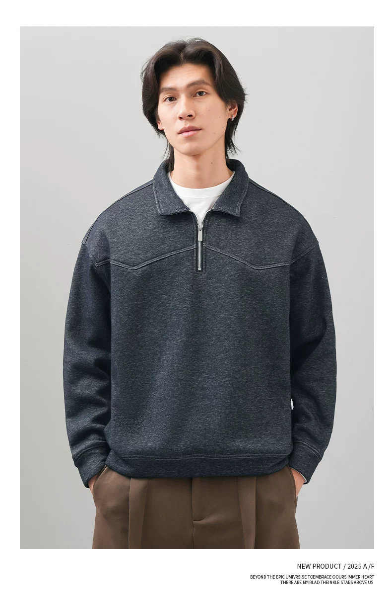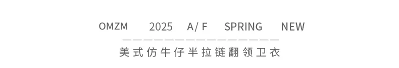 Áo khoác nỉ nửa khóa kéo OMZM dành cho nam, kiểu mới thu đông 2025, phối vải denim, tay dài, cổ trụ, kiểu áo thun mặc trong