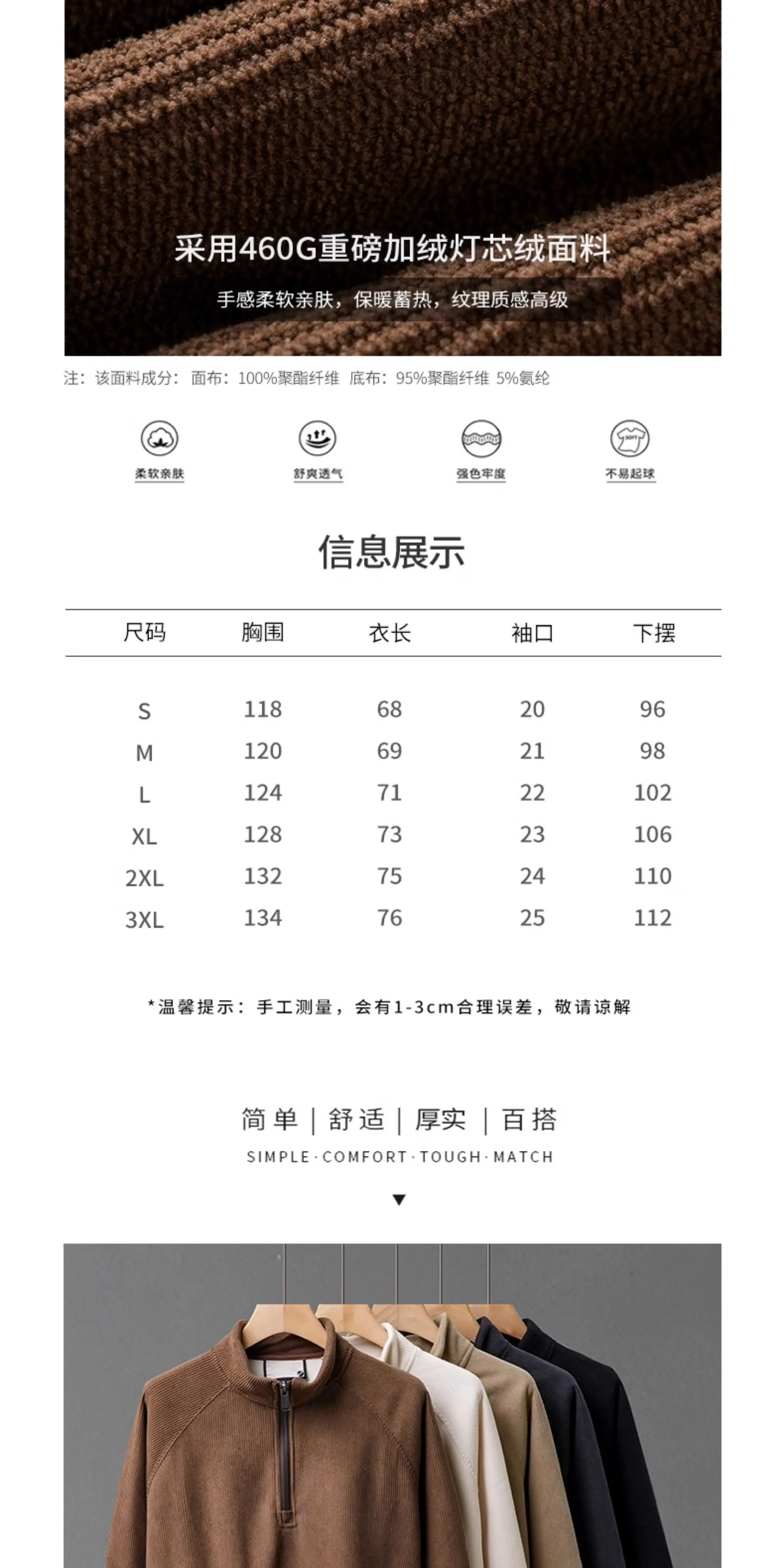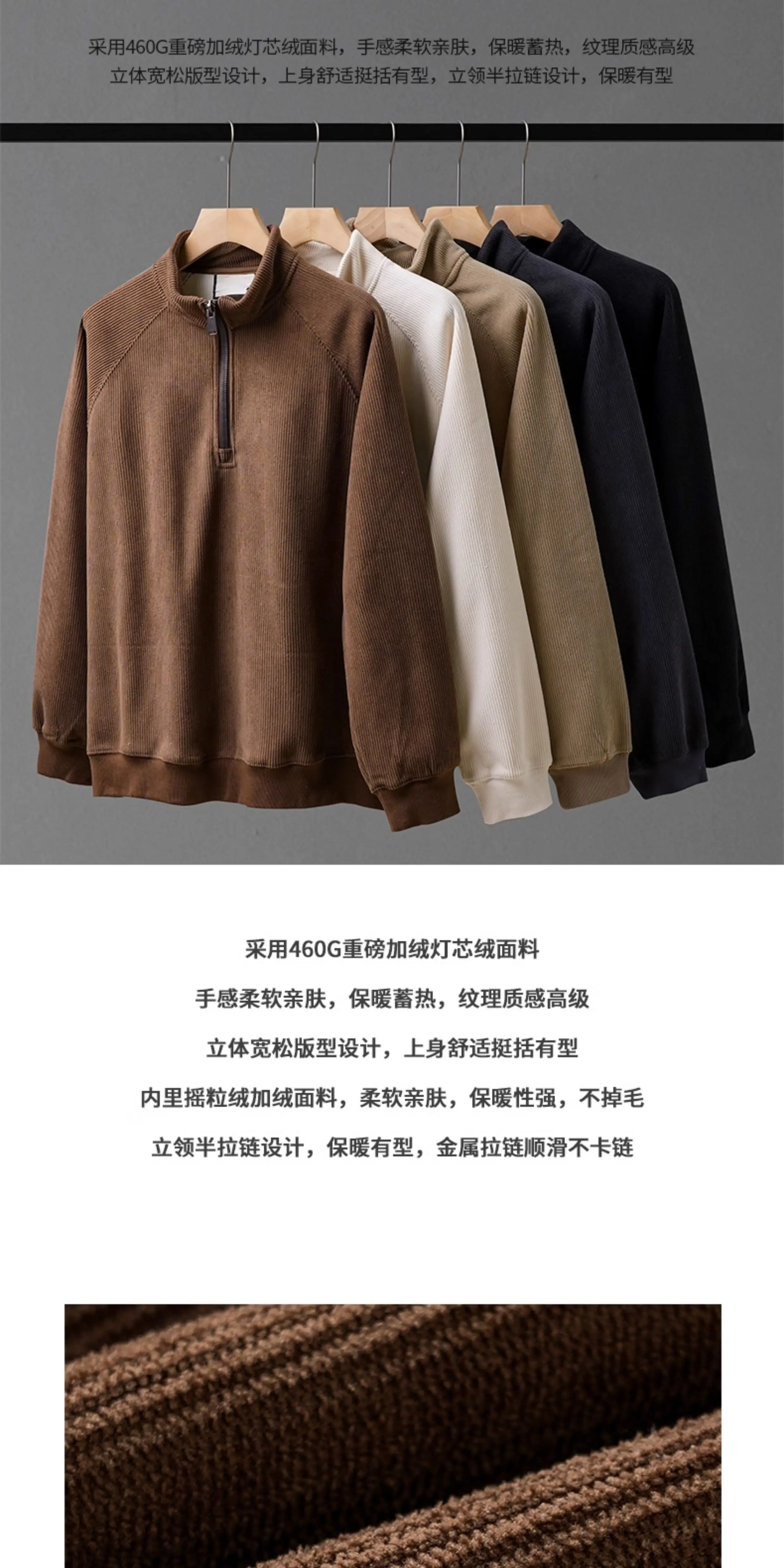 - Áo khoác nỉ nửa khóa kéo OMZM460G dành cho nam, áo len dày giữ ấm mùa đông, cổ đứng chất liệu vải gân