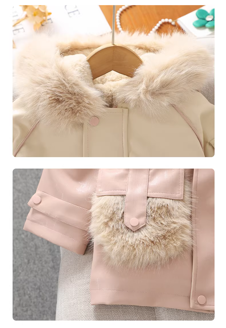- Áo khoác parka lót lông cừu cho bé gái, áo khoác dày có mũ, kiểu mới 2025, áo khoác cotton dài cho bé gái lớn tuổi mùa thu đông.