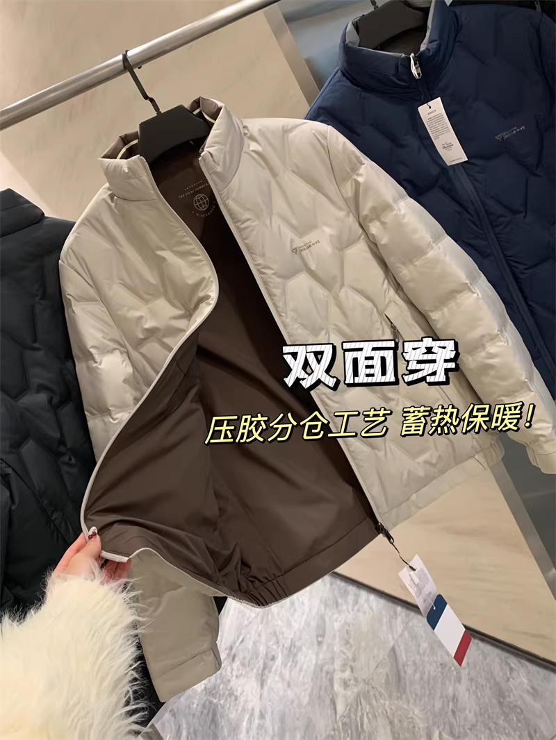 Áo khoác phao cổ đứng dày dặn giữ ấm mùa thu đông, thiết kế hai lớp, ngăn chia riêng biệt! 90% lông vũ vịt.