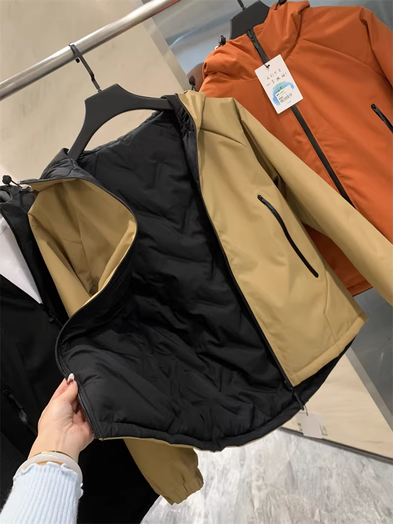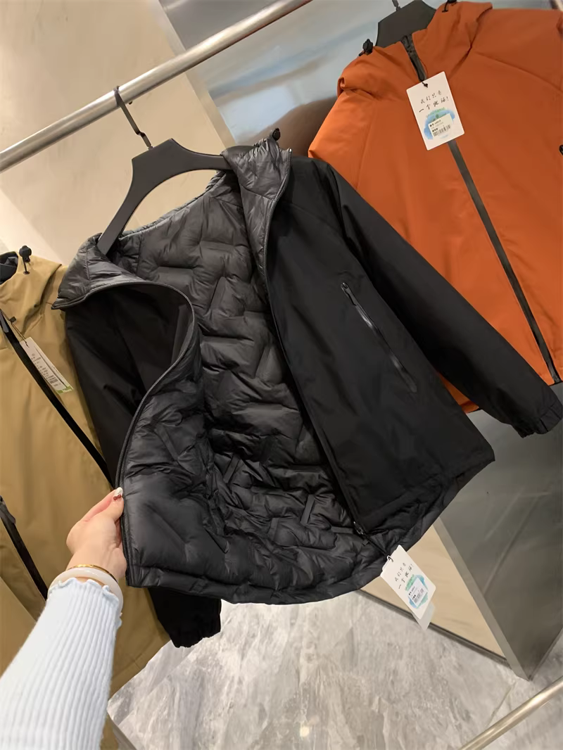 - Áo khoác phao có mũ trùm đầu dành cho nam, chất liệu lông vũ trắng 90%, chống gió và chống thấm nước, kiểu dáng Don Quixote.