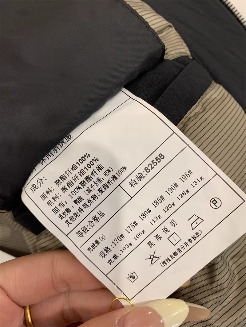 | 180 | 肩宽54 | 胸围126 | 袖长62 | 衣长75 | 充绒量113g |