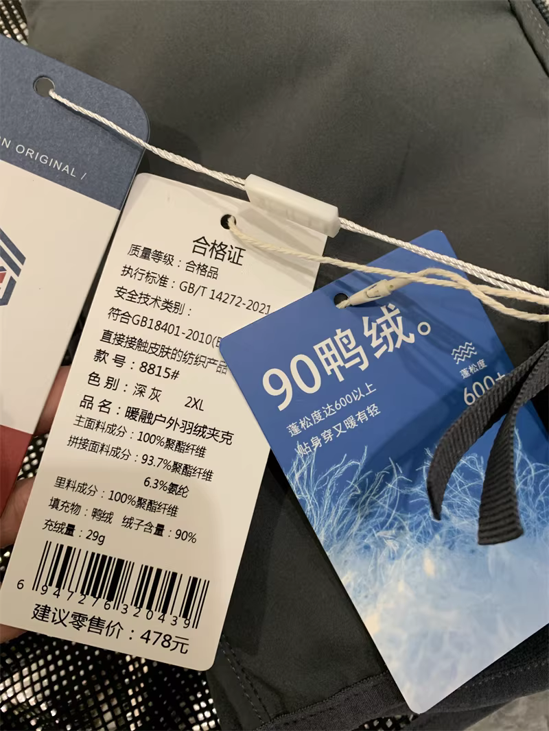 | XL | 肩宽42 | 胸围115 | 袖长51 | 衣长66 | 充绒量27g |