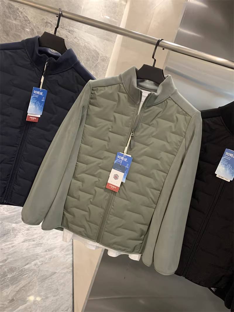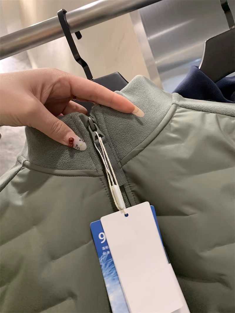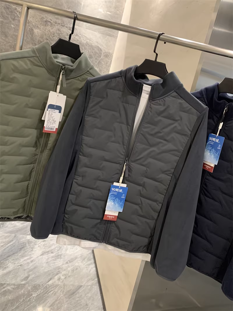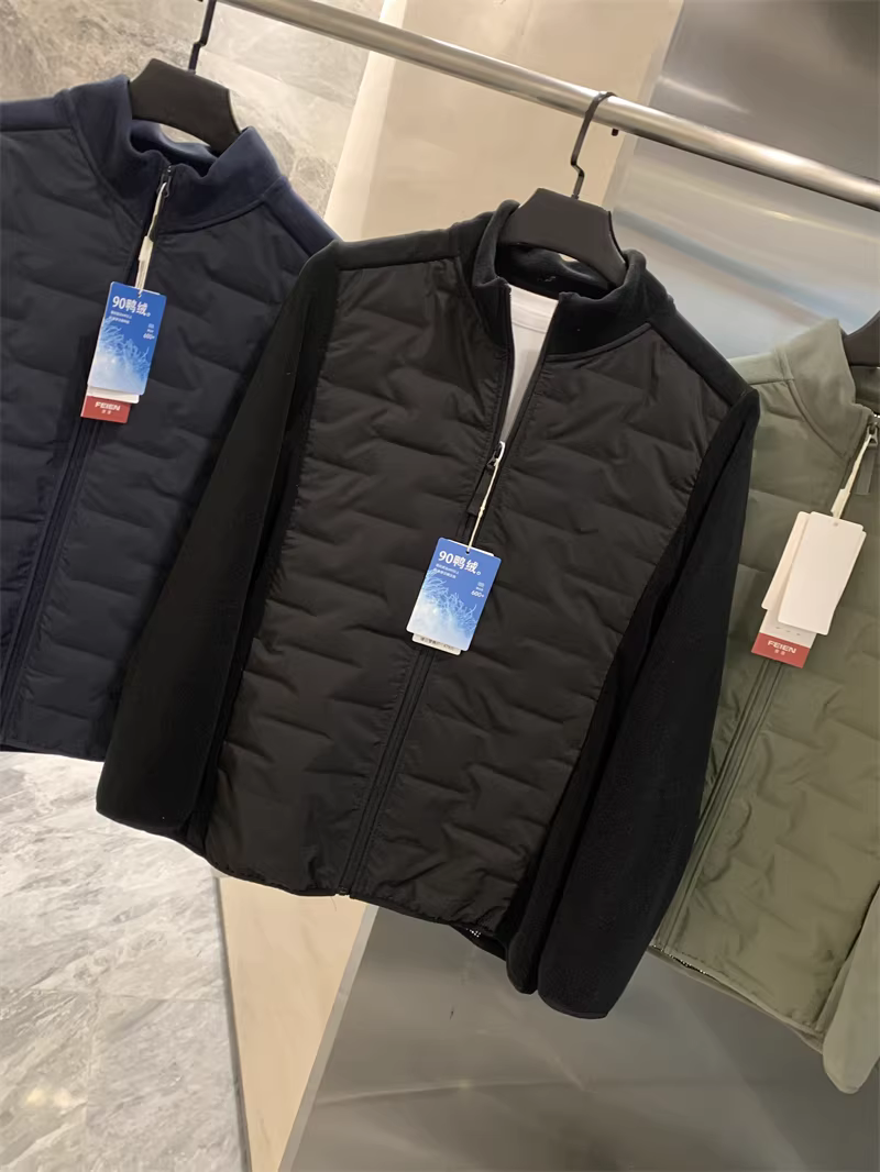 Áo khoác phao kết hợp lông cừu Polar Fleece Don Quixote! 90% lông vũ vịt! Đường may kín, cách nhiệt, cổ đứng nhỏ dành cho nam.