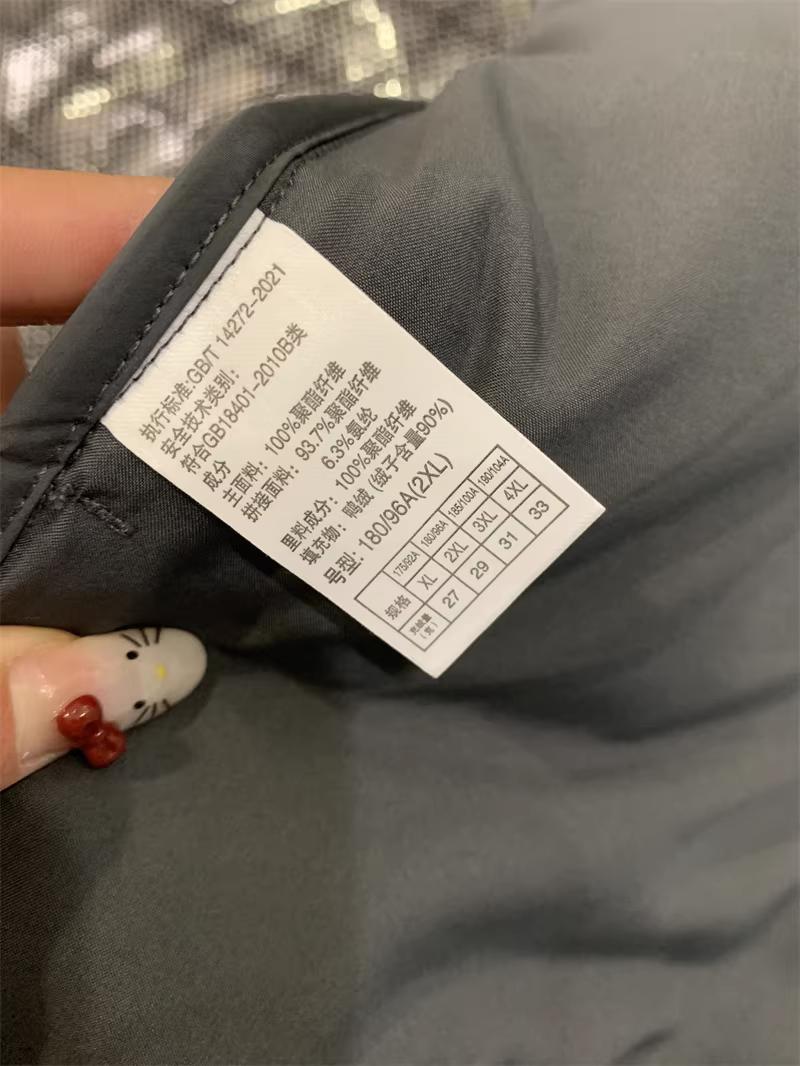 | 3XL | 肩宽44 | 胸围120 | 袖长54 | 衣长70 | 充绒量31g |