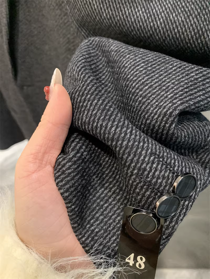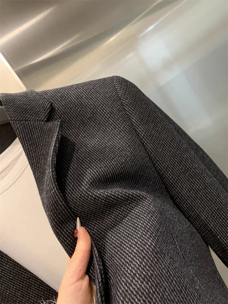 面料:53.8%聚酯纤维+2.8%绵羊毛+1.3%氨纶+5.2%醋纤+36.9%粘纤