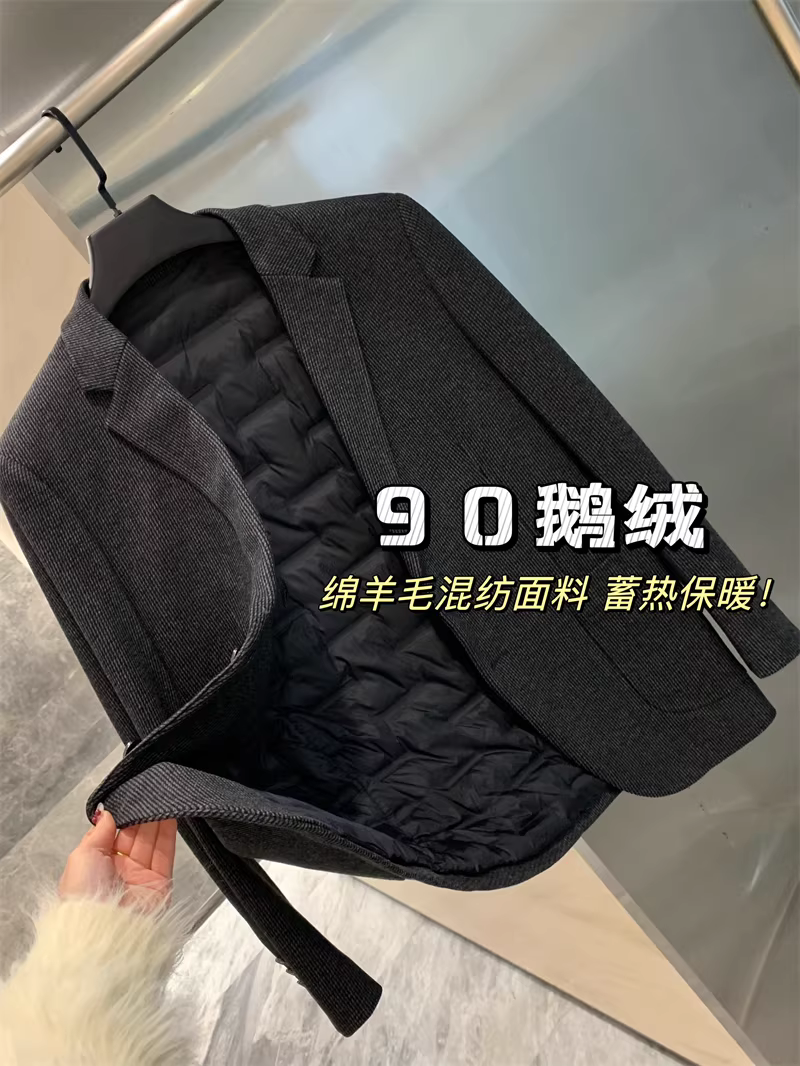 - Áo khoác phao kiểu vest công sở nhẹ, chất liệu 90% lông ngỗng Don Quixote! Lông cừu bên trong!