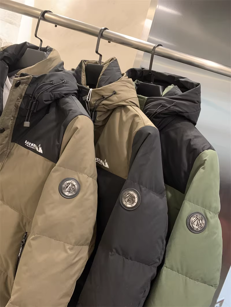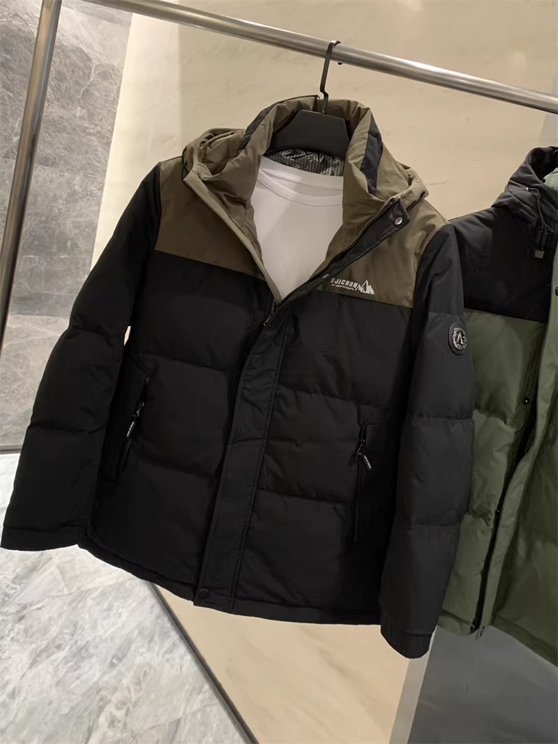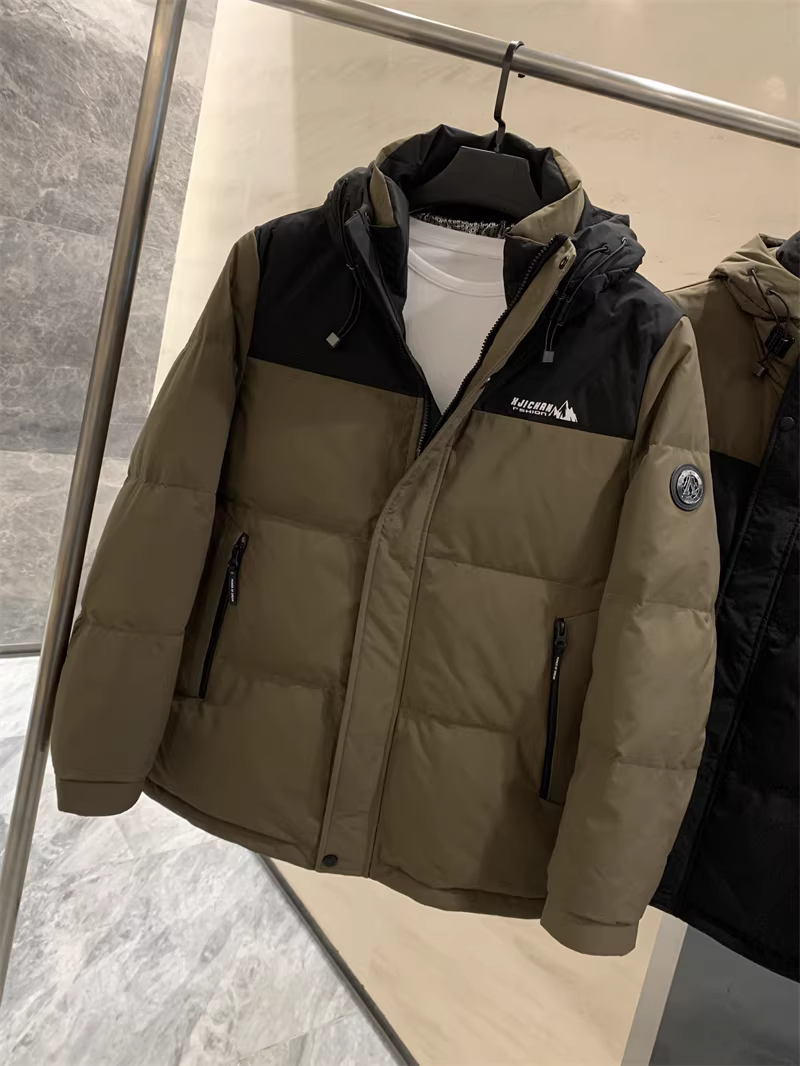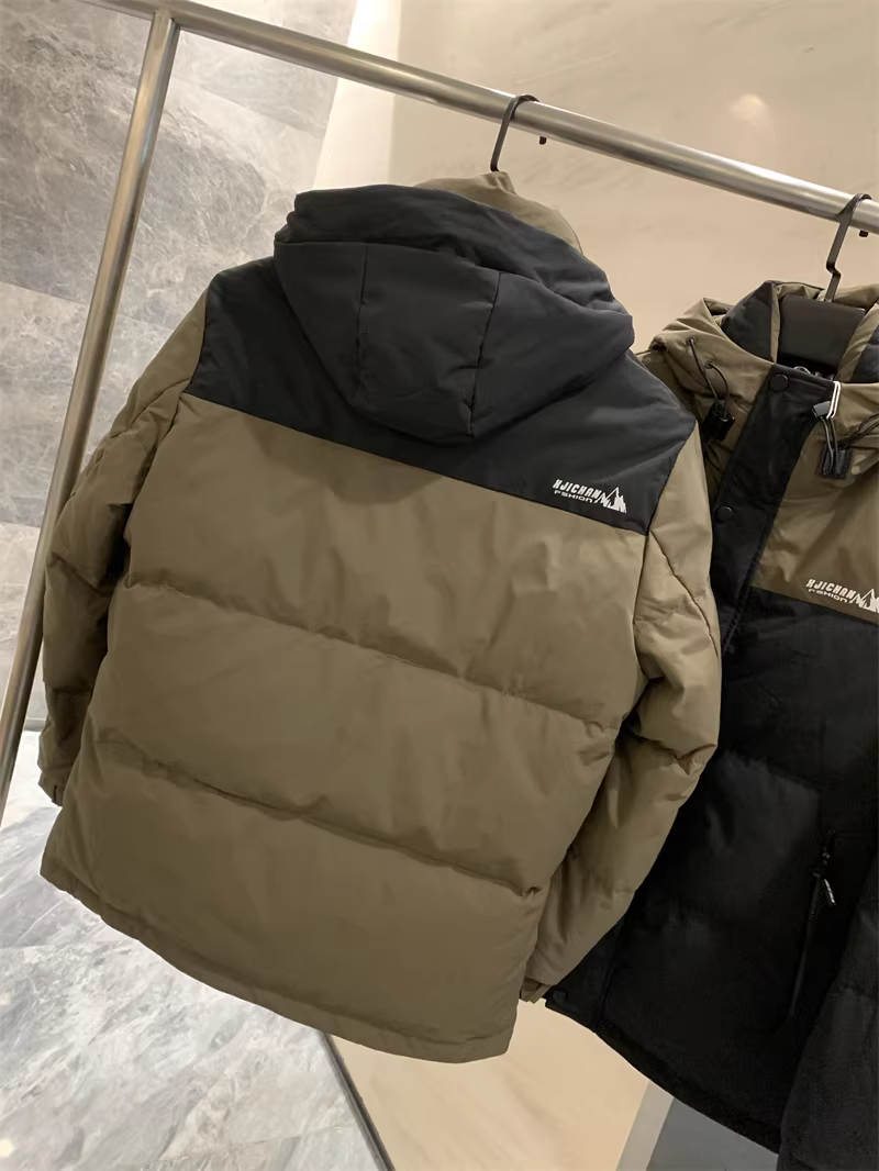 Áo khoác phao nam Don Quixote dày dặn và ấm áp! 90% lông vũ vịt! Áo khoác phao có mũ trùm đầu phối màu chống lạnh mùa đông thời trang.