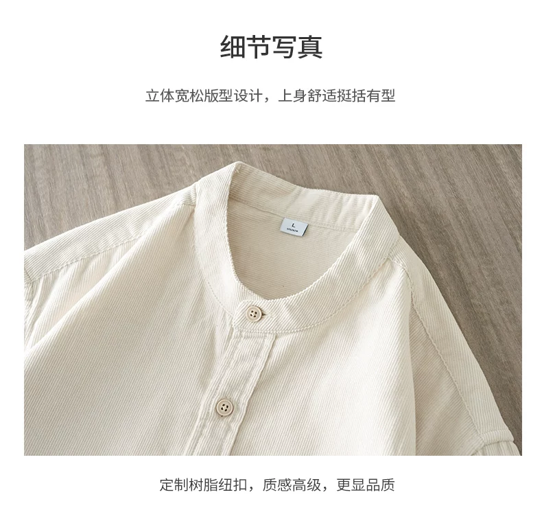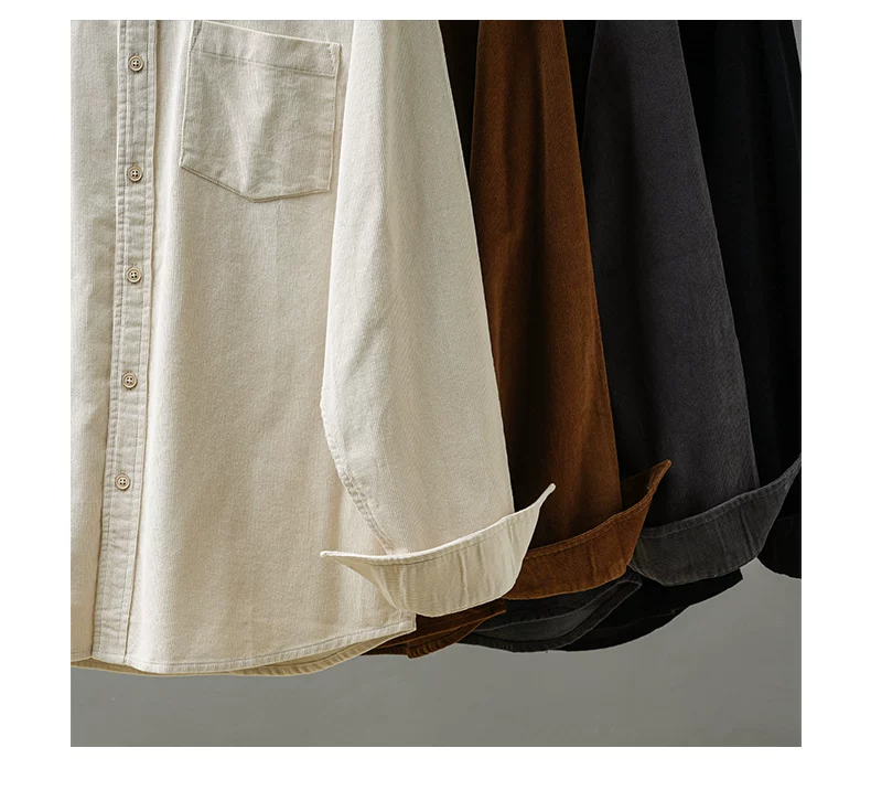 - Áo khoác sơ mi chất liệu vải gân dày 350G dành cho nam, mùa thu đông 2024, áo sơ mi giữ ấm chất liệu cotton nguyên chất, tay dài, cổ đứng