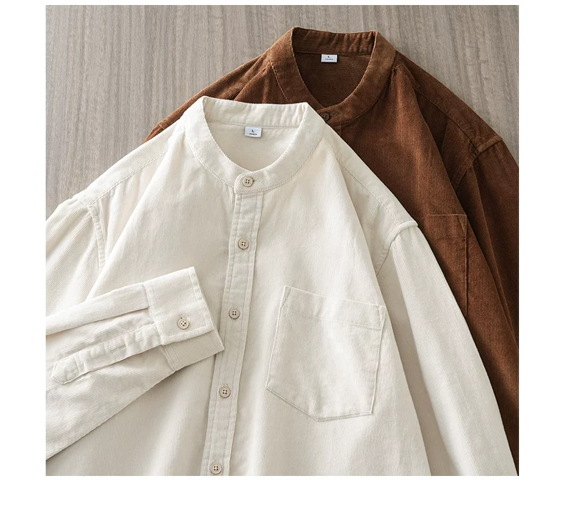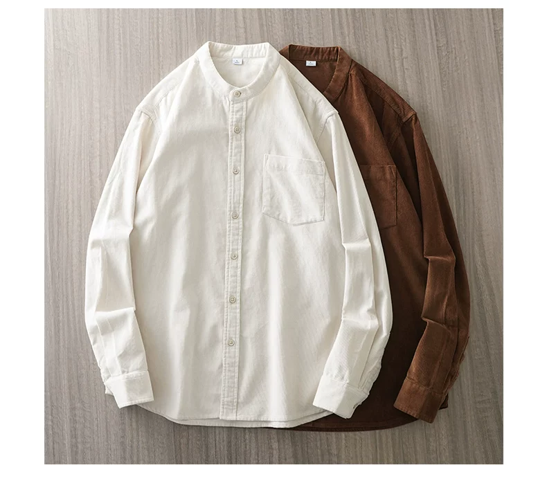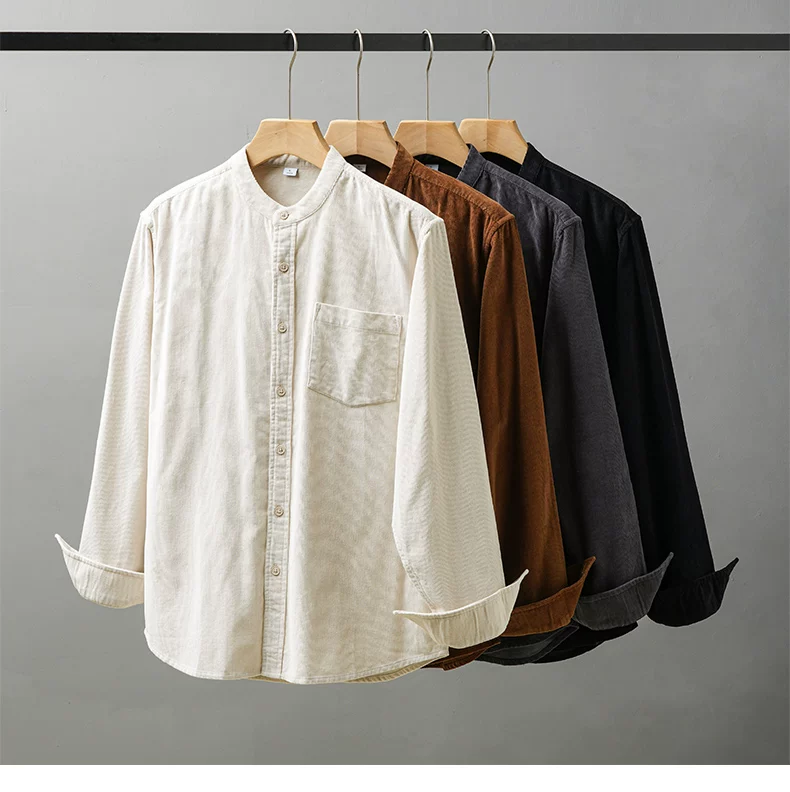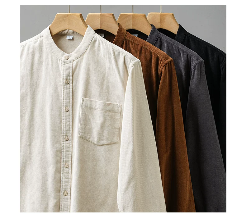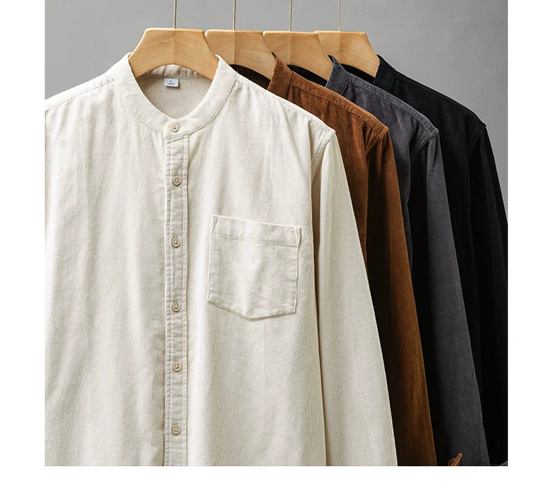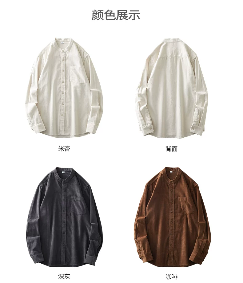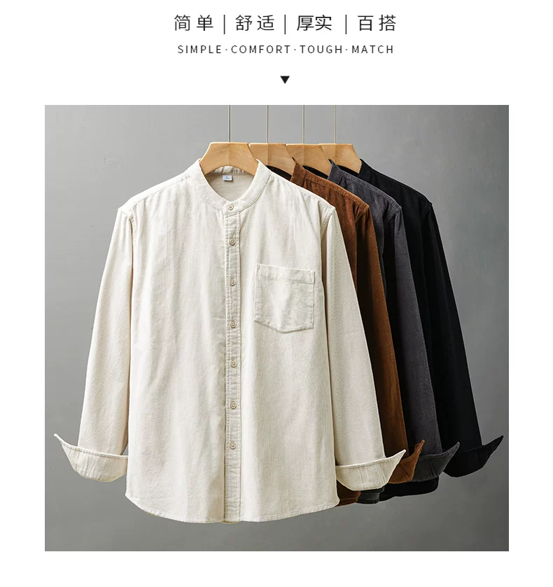 Áo khoác sơ mi chất liệu vải gân dày 350G dành cho nam, mùa thu đông 2024, áo sơ mi giữ ấm chất liệu cotton nguyên chất, tay dài, cổ đứng