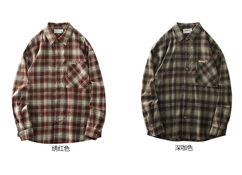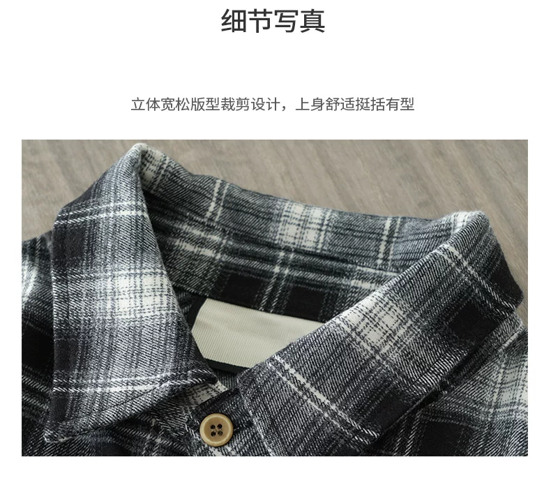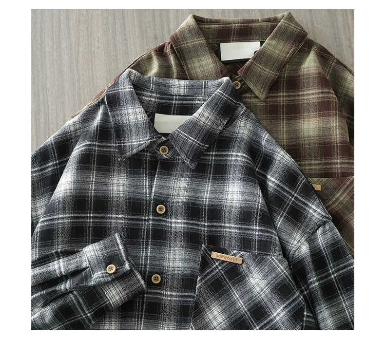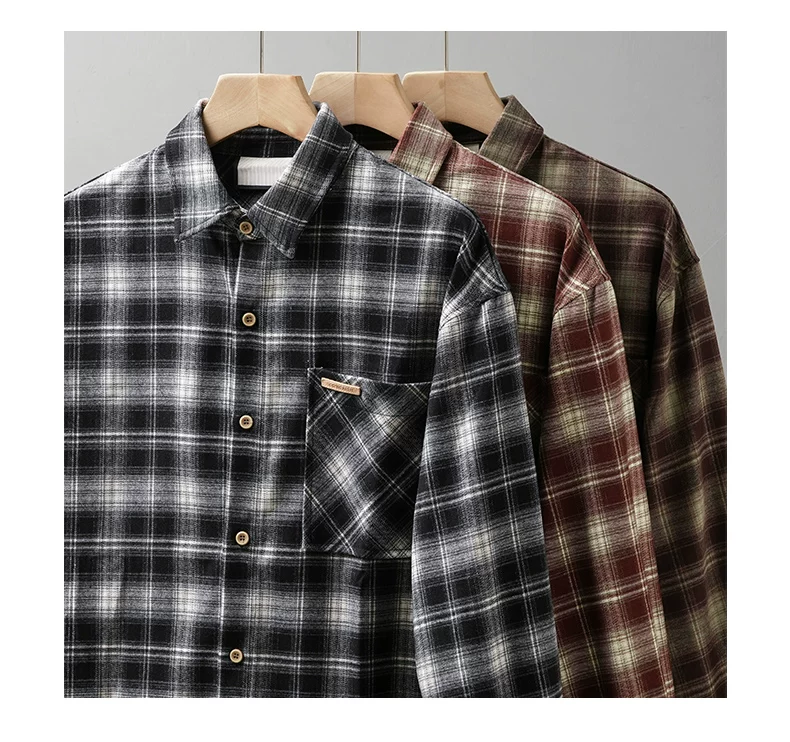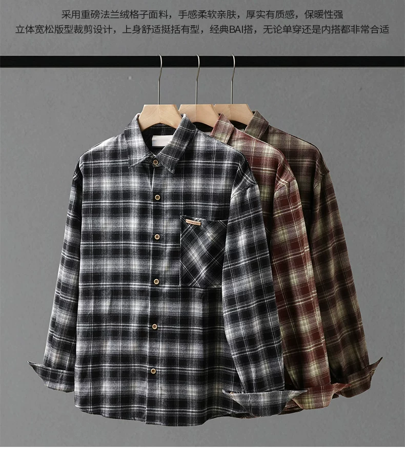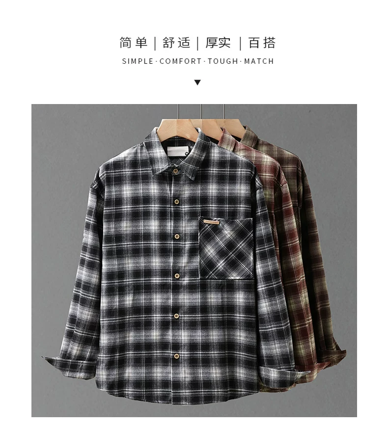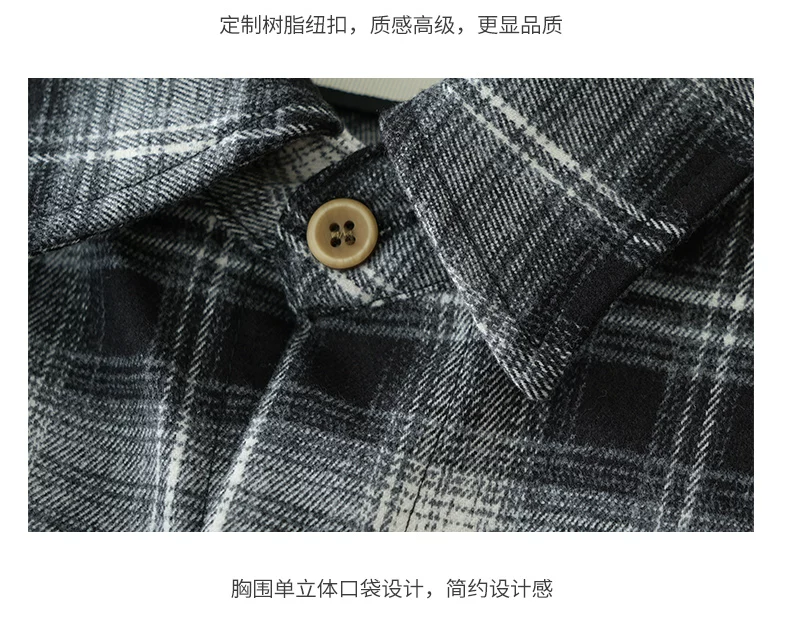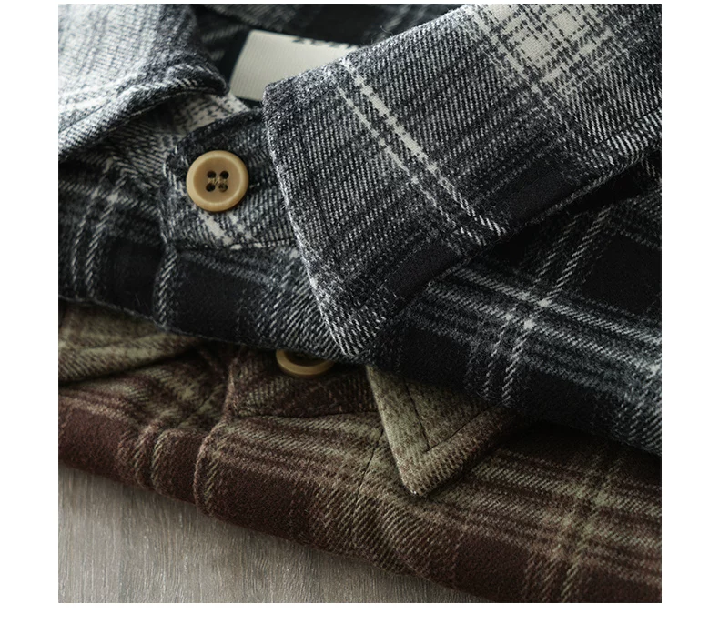 - Áo khoác sơ mi flannel hạng nặng OMZM dành cho nam, áo sơ mi kẻ sọc ấm áp mùa thu đông, áo sơ mi dài tay cổ điển kiểu Mỹ