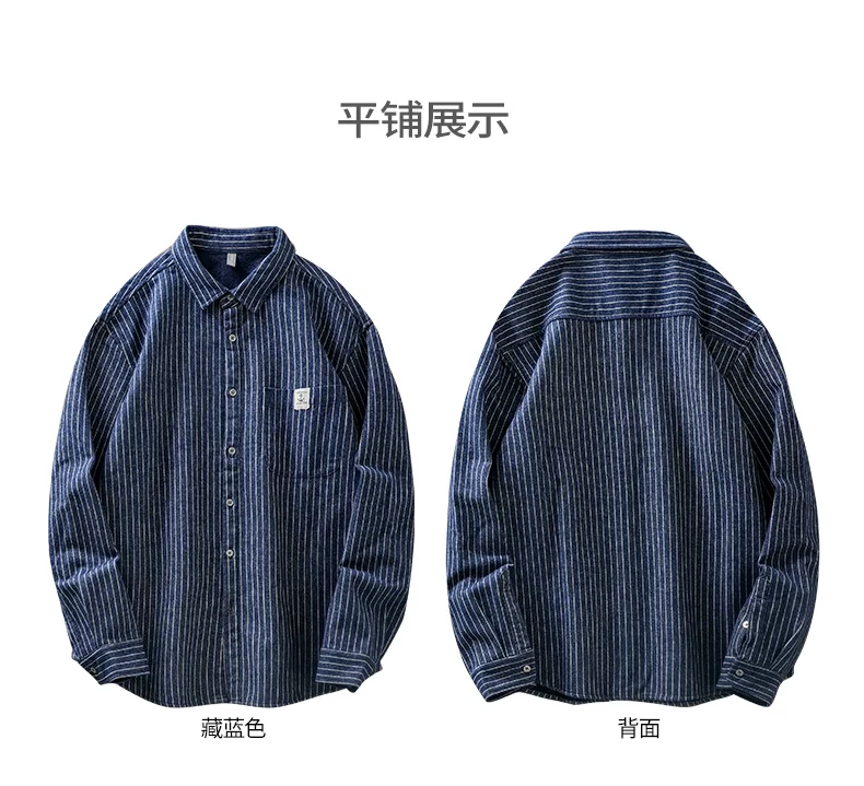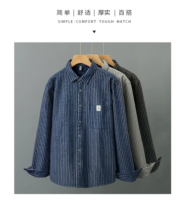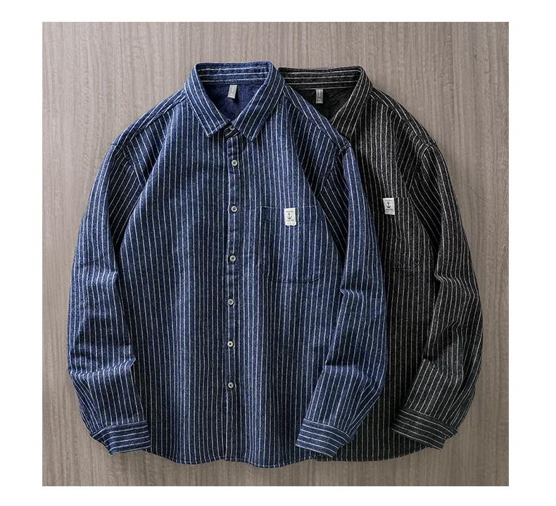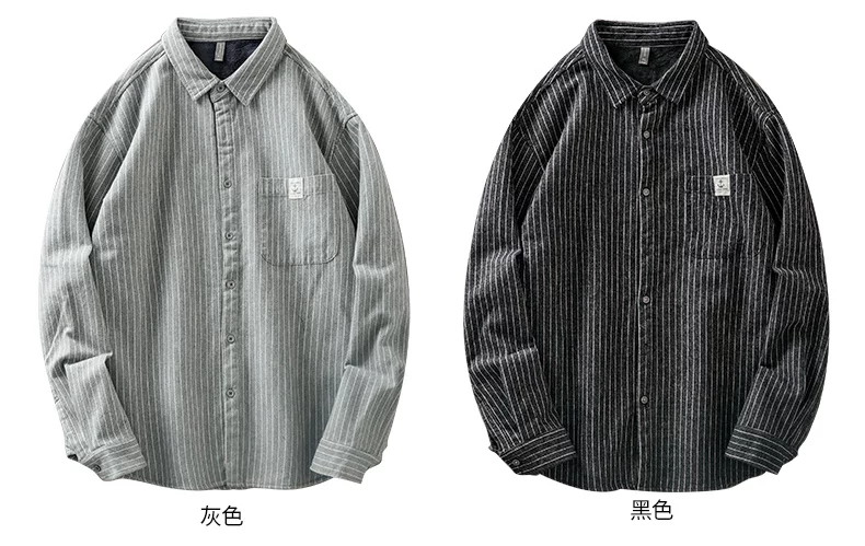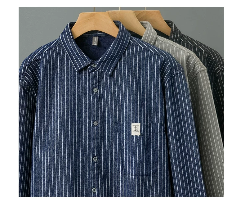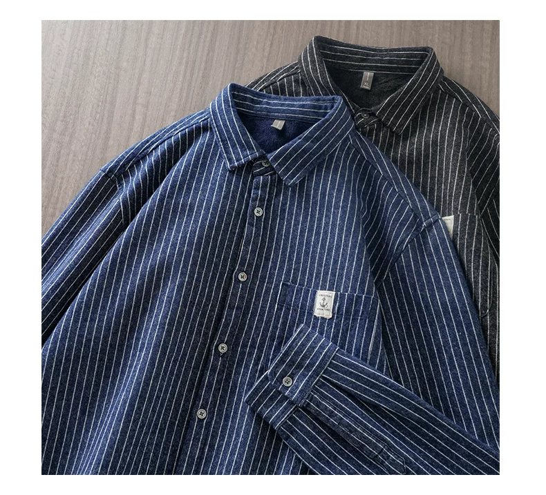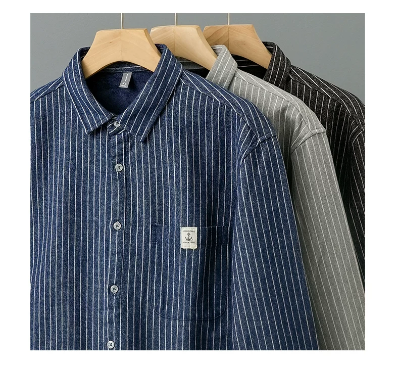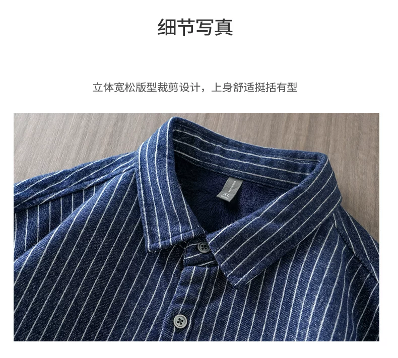 - Áo khoác sọc lót lông cừu hạng nặng OMZM dành cho nam, áo sơ mi dày dặn ấm áp mùa thu đông, áo khoác chải kiểu cổ điển Mỹ