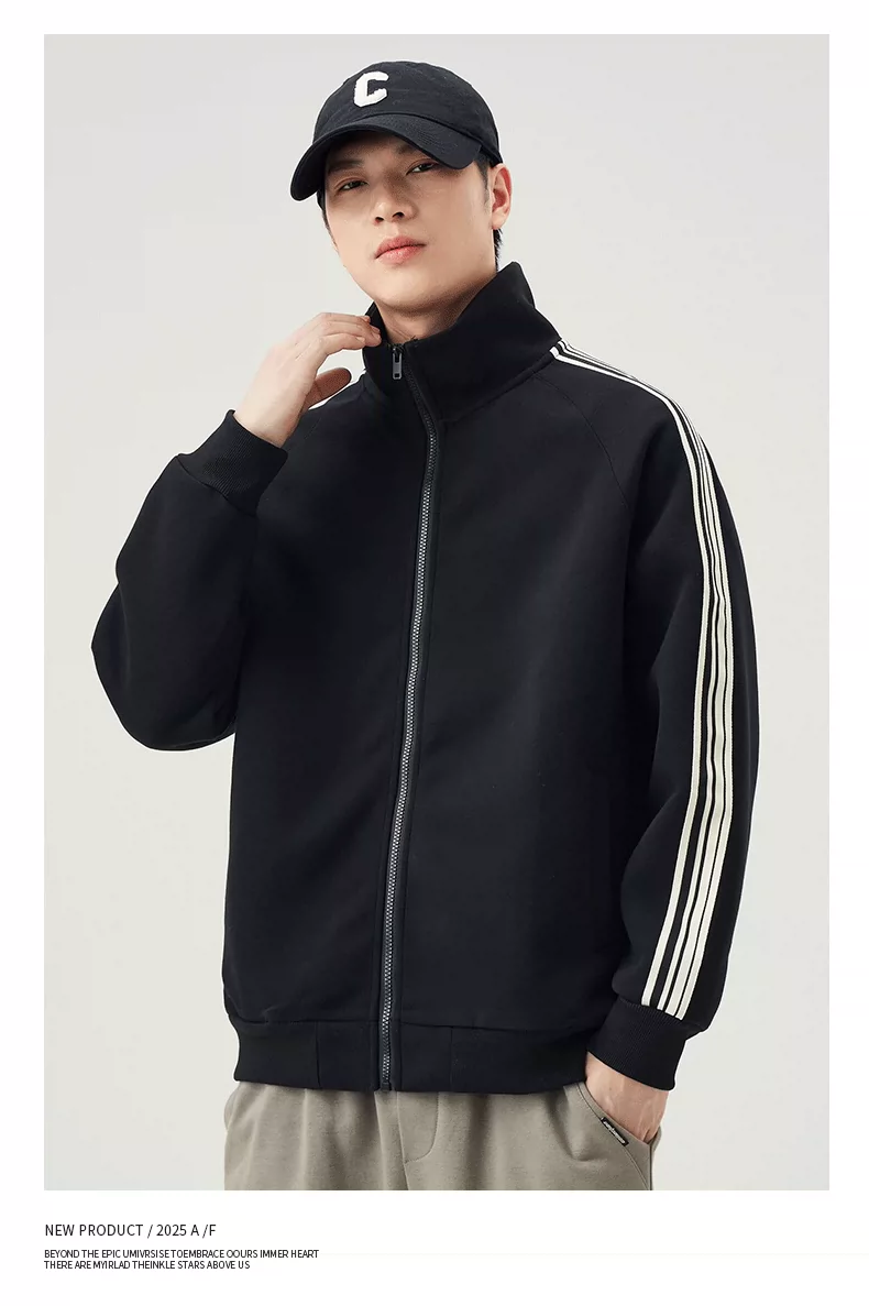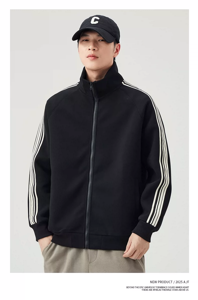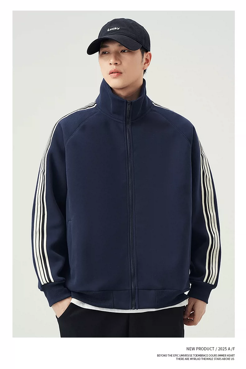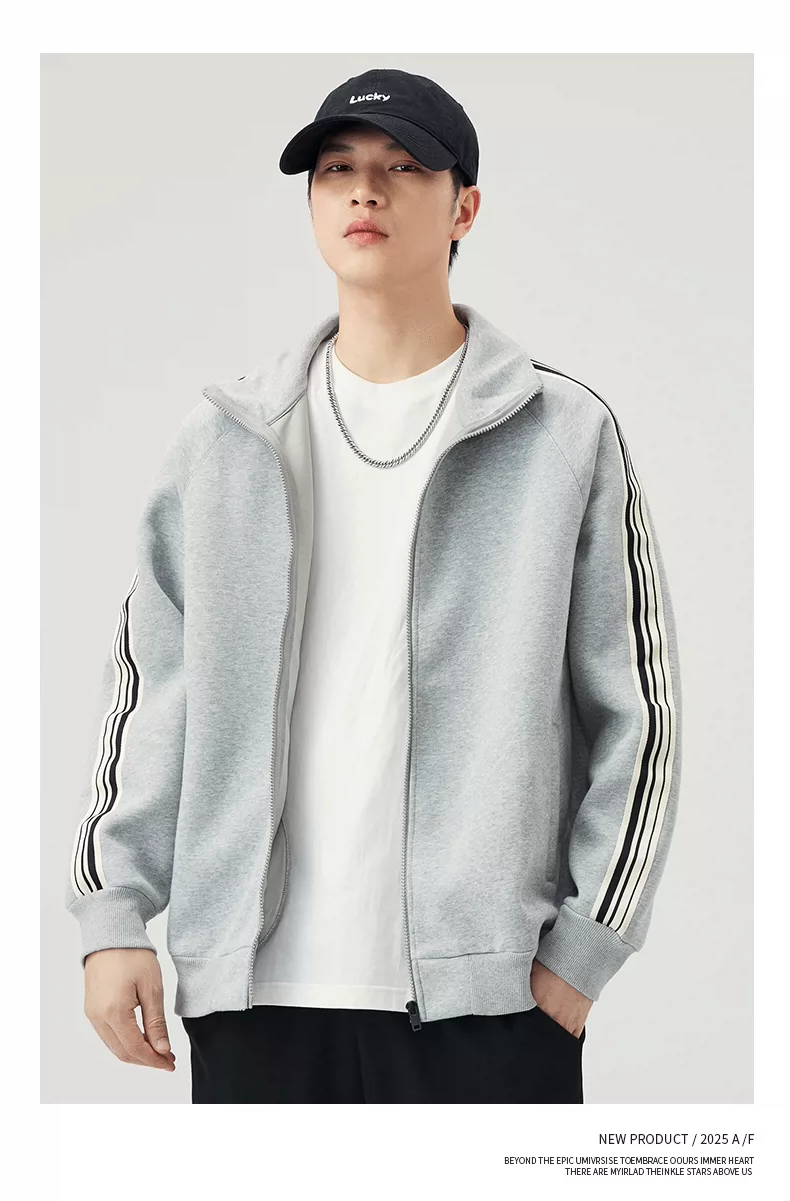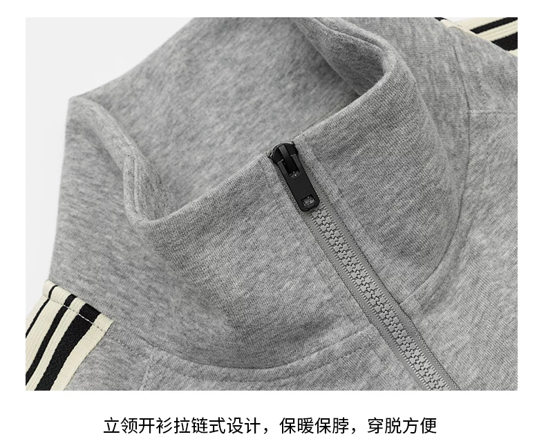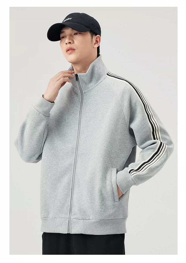 - Áo len cardigan cổ đứng hạng nặng OMZM420G dành cho nam, áo khoác thể thao ba sọc mùa thu có khóa kéo