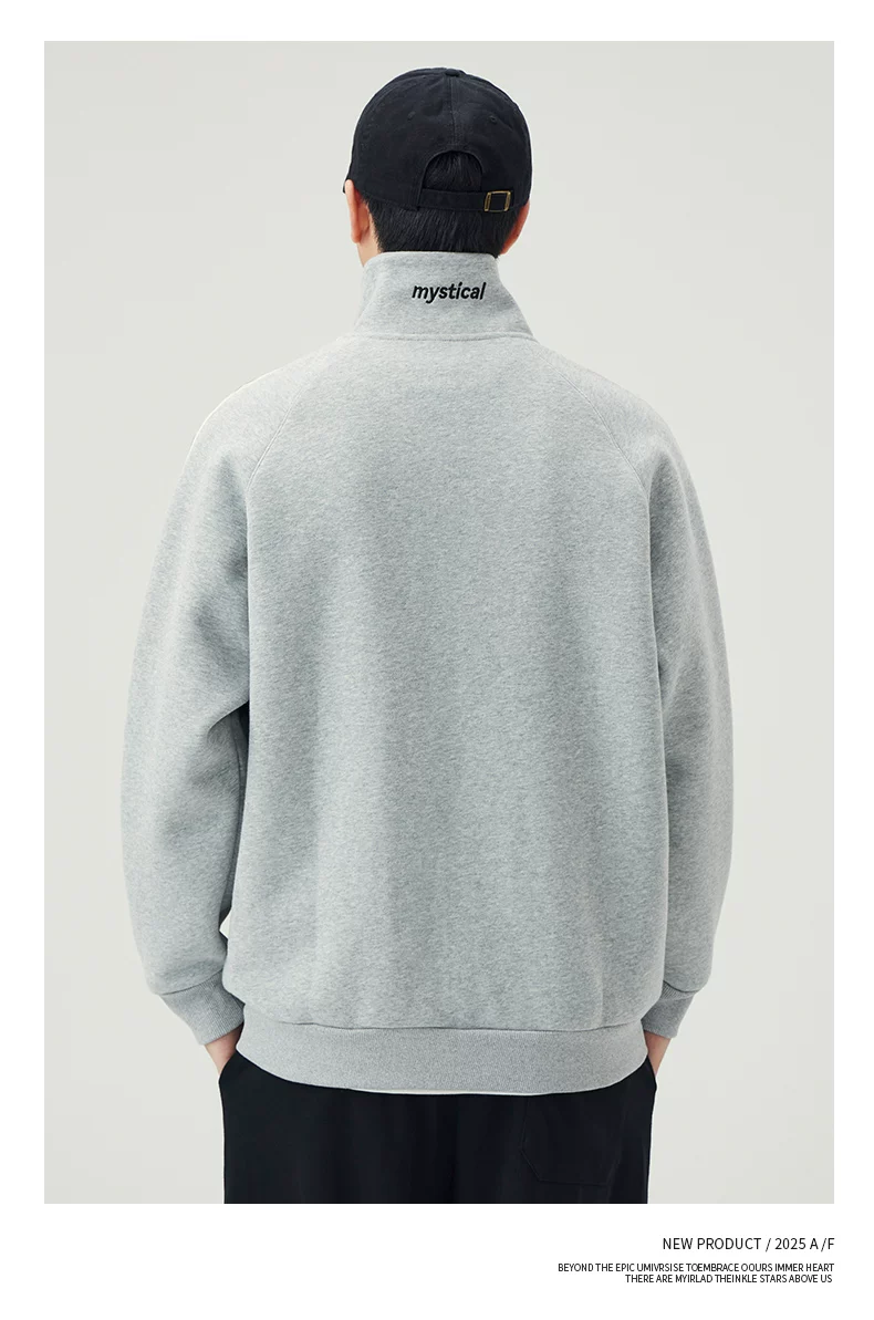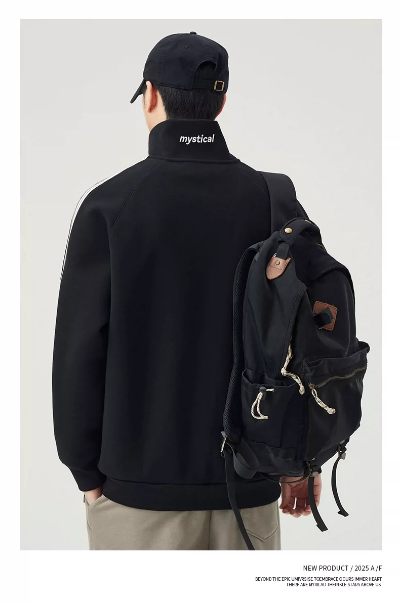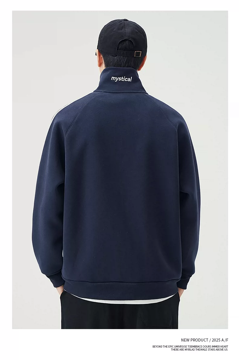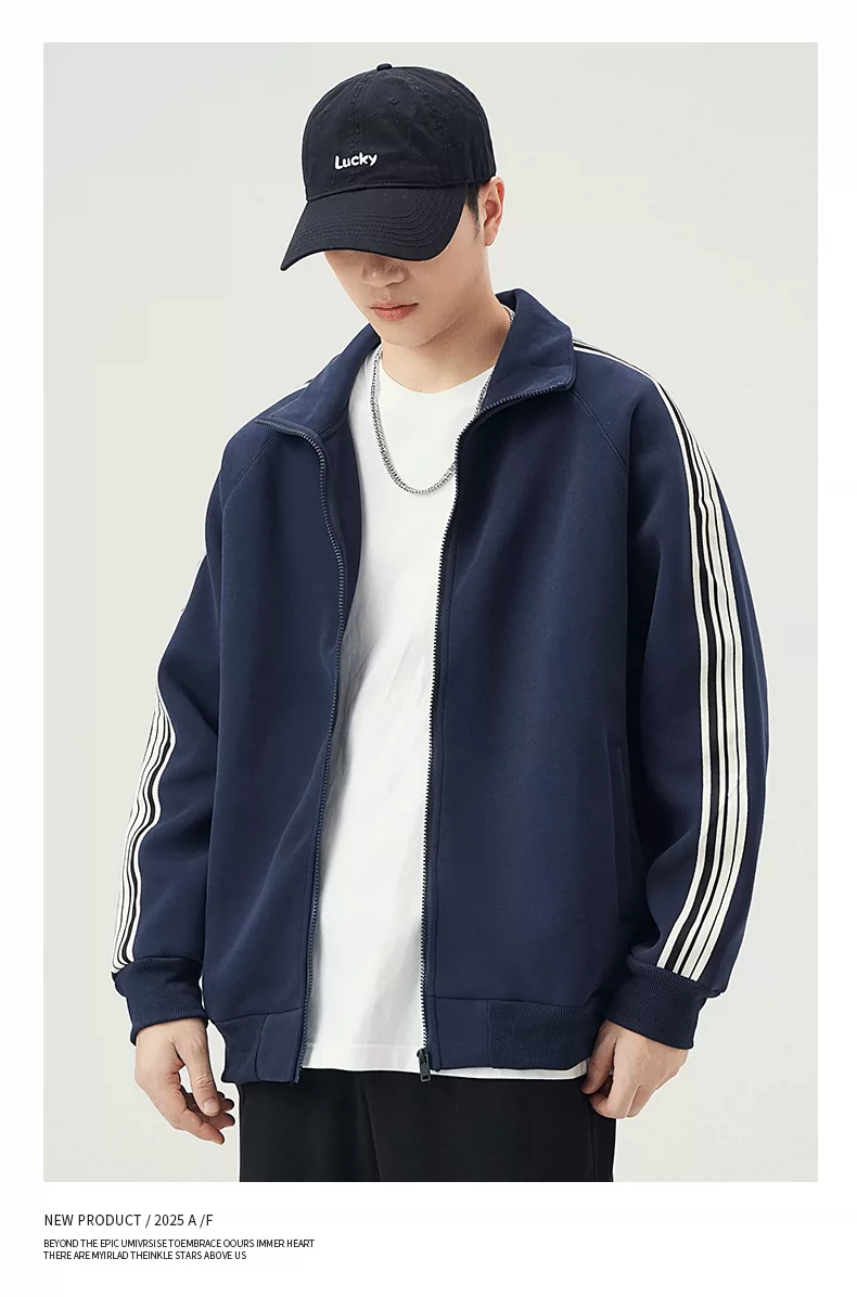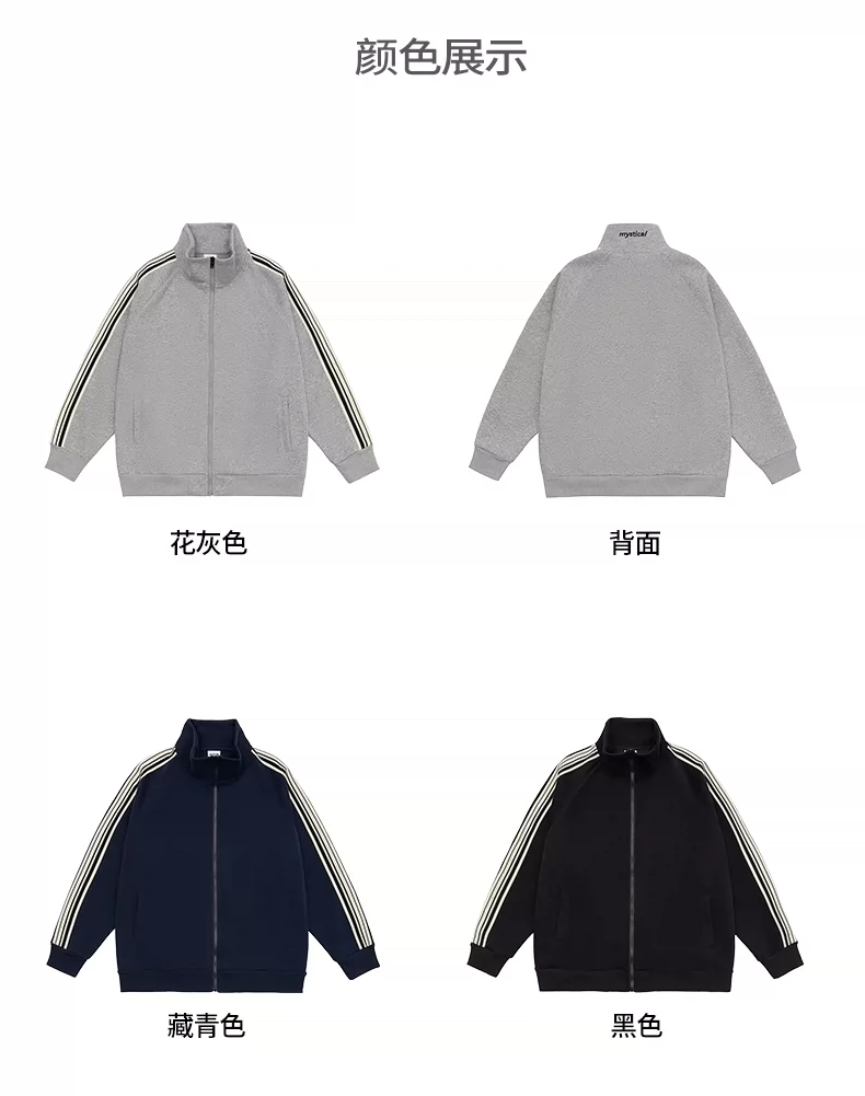 - Áo len cardigan cổ đứng hạng nặng OMZM420G dành cho nam, áo khoác thể thao ba sọc mùa thu có khóa kéo