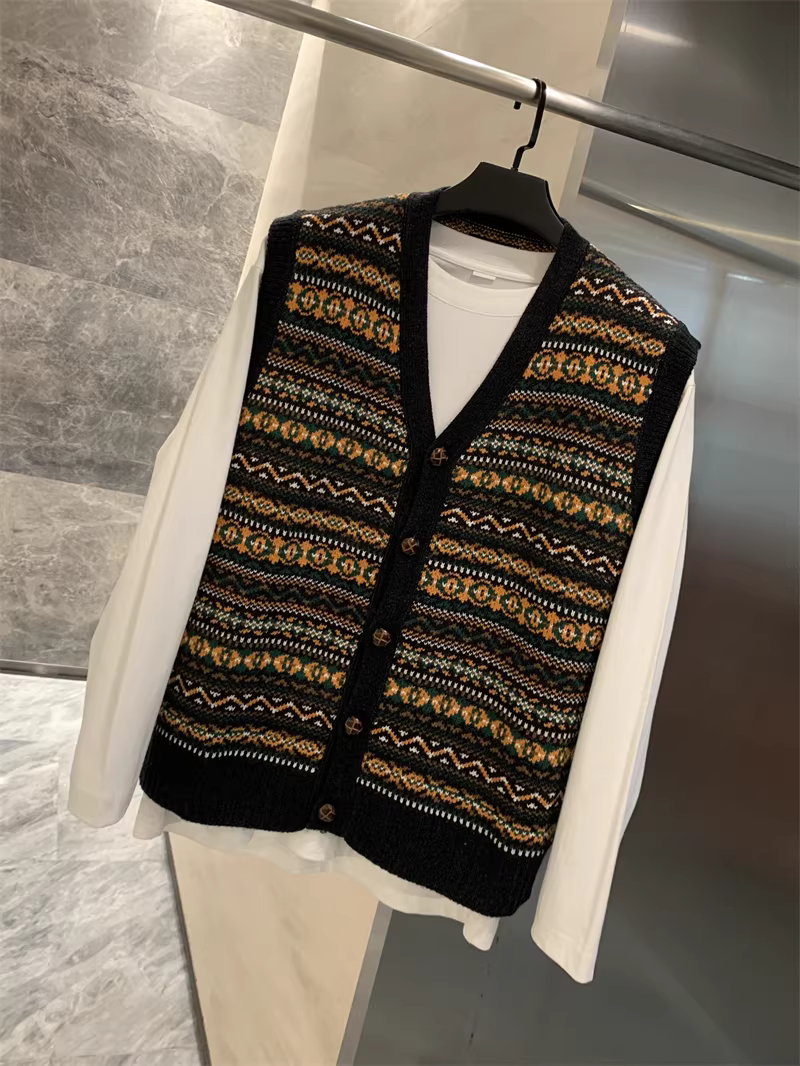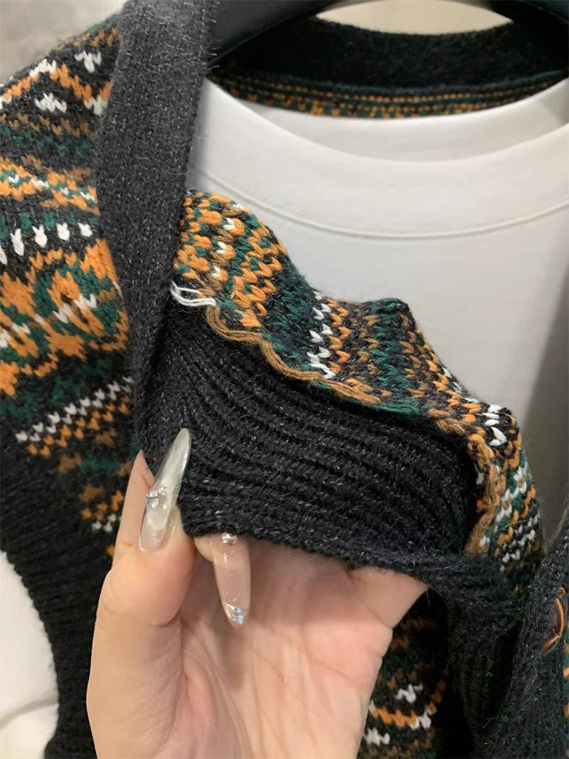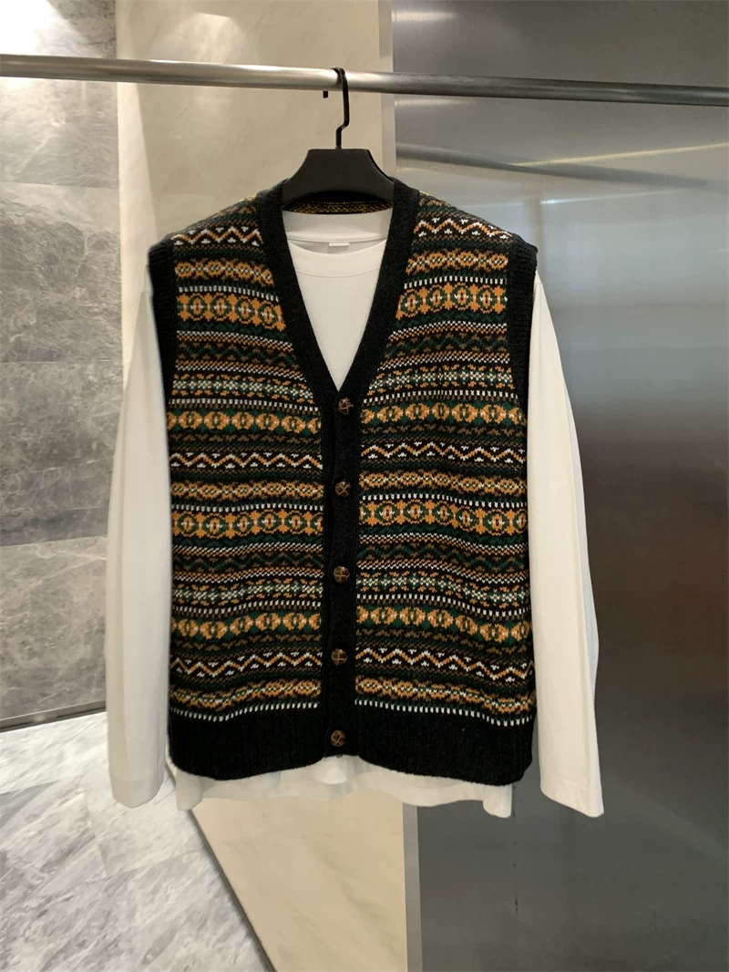 - Áo len cardigan cổ V nam phong cách dân tộc cổ điển Don Quixote! Chất liệu len cừu pha + kỹ thuật dệt jacquard!