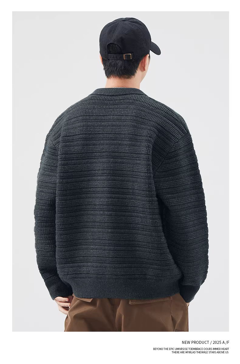 Áo len cardigan dáng rộng dành cho nam, phong cách retro Mỹ mùa đông, ấm áp, phong cách thoải mái, áo khoác dệt kim cao cấp.