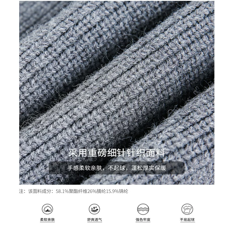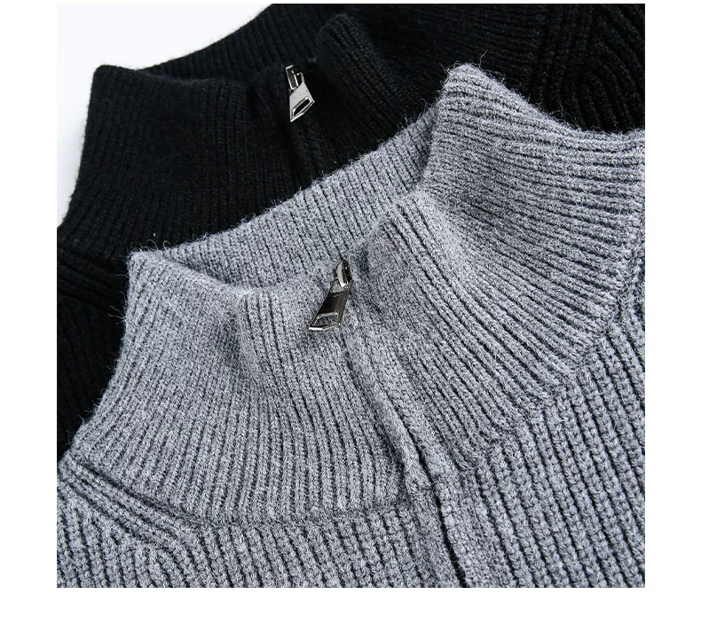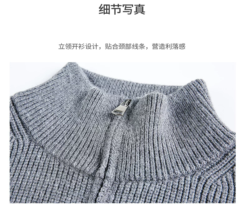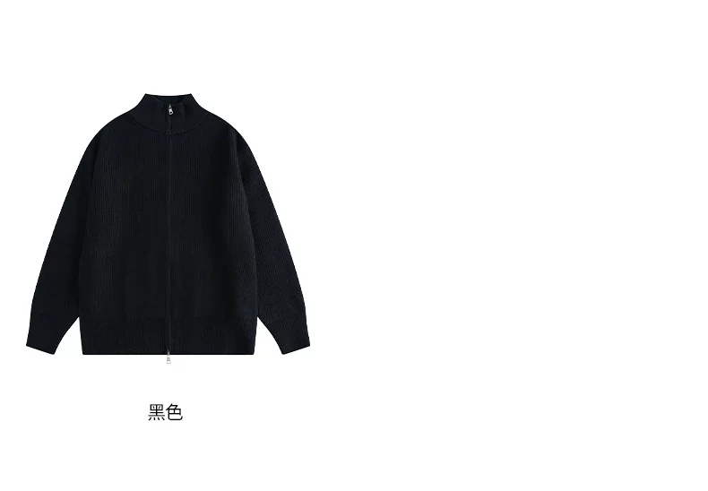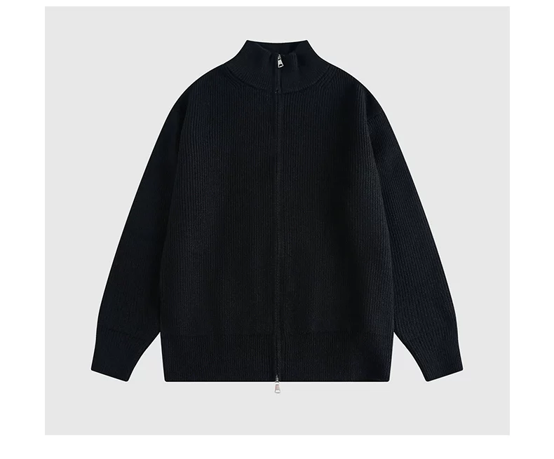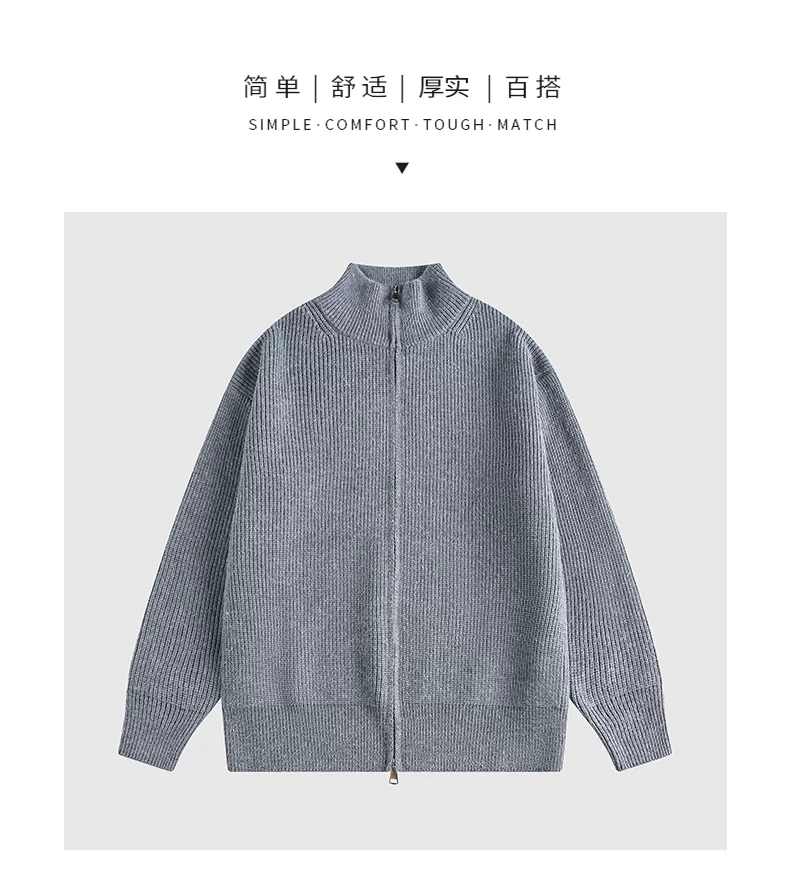 - Áo len cardigan hạng nặng OMZM dành cho nam, áo len dệt kim phong cách retro kiểu Mỹ mùa đông có khóa kéo và cổ đứng.