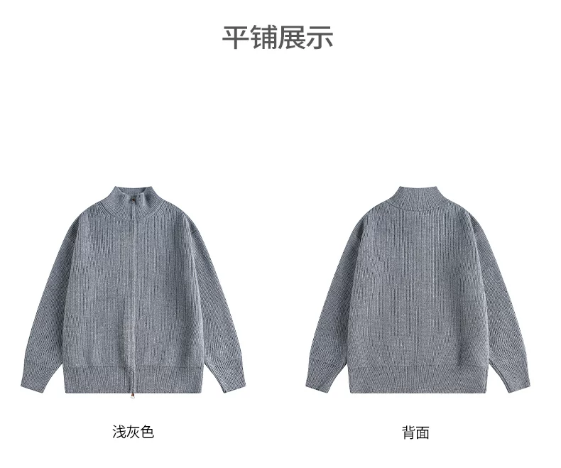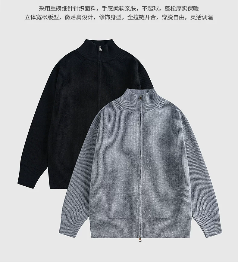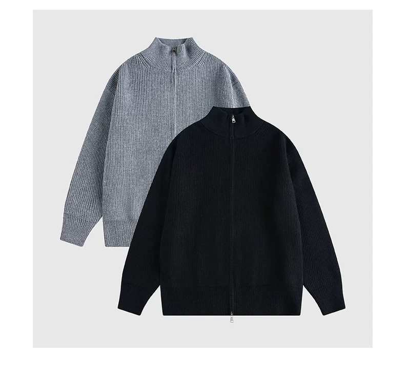 Áo len cardigan hạng nặng OMZM dành cho nam, áo len dệt kim phong cách retro kiểu Mỹ mùa đông có khóa kéo và cổ đứng.