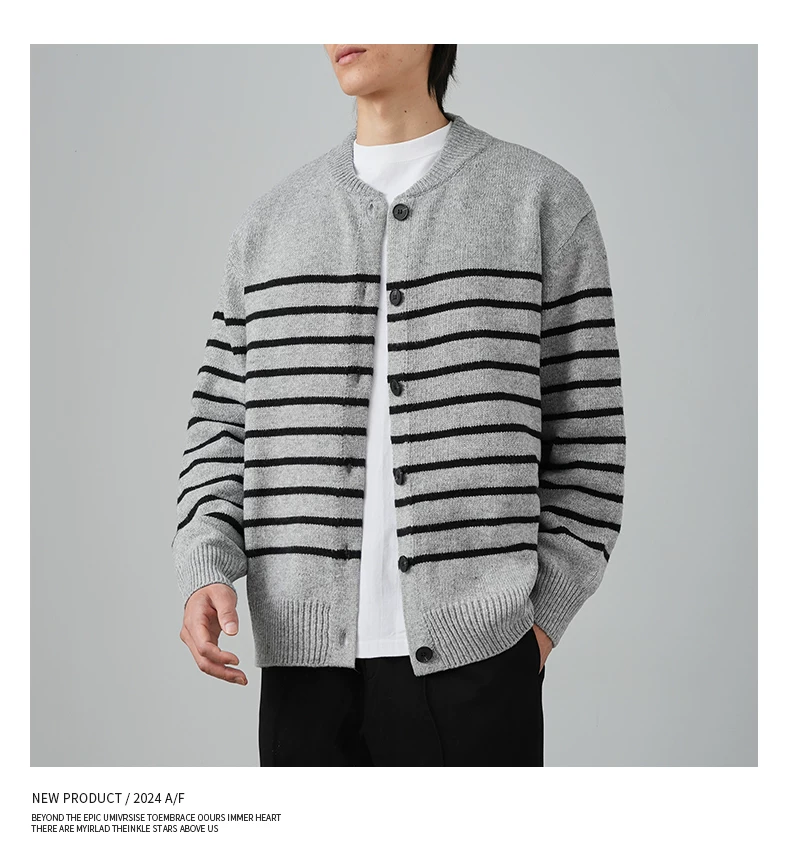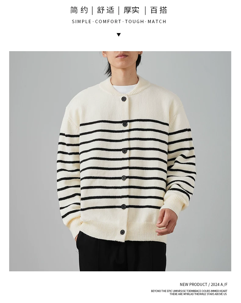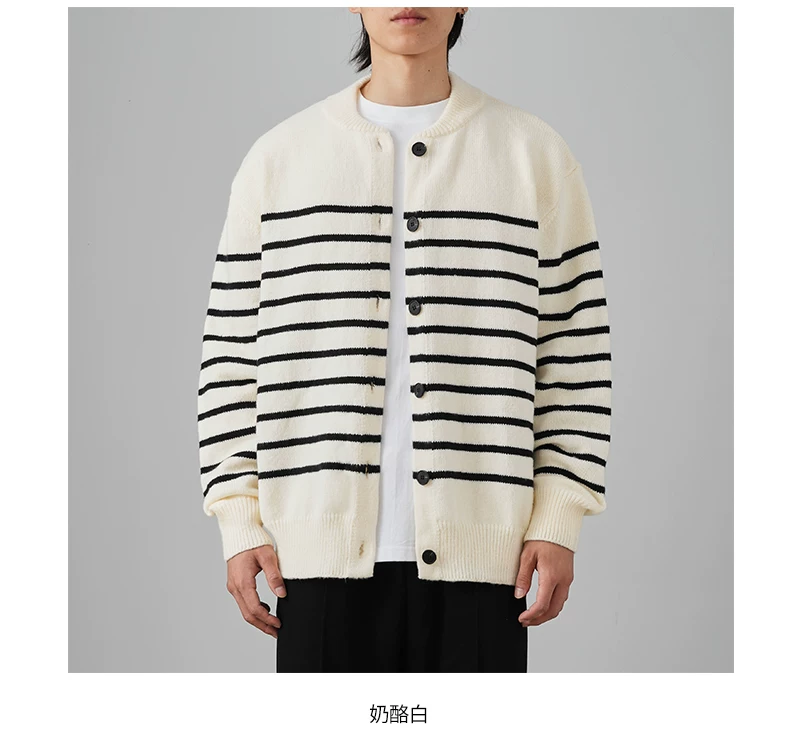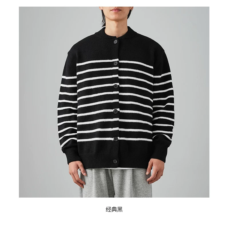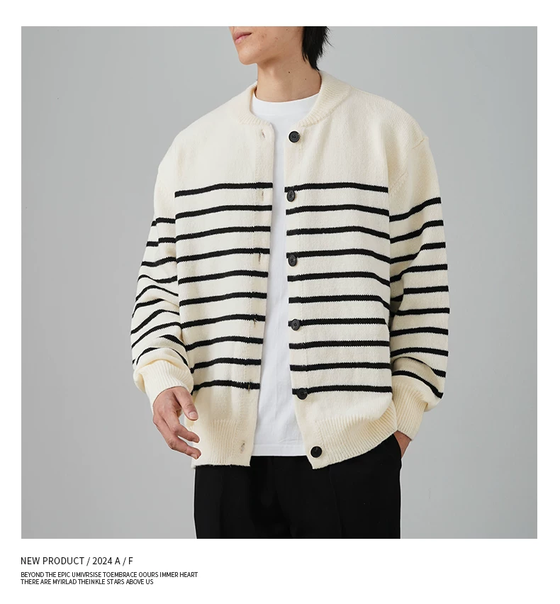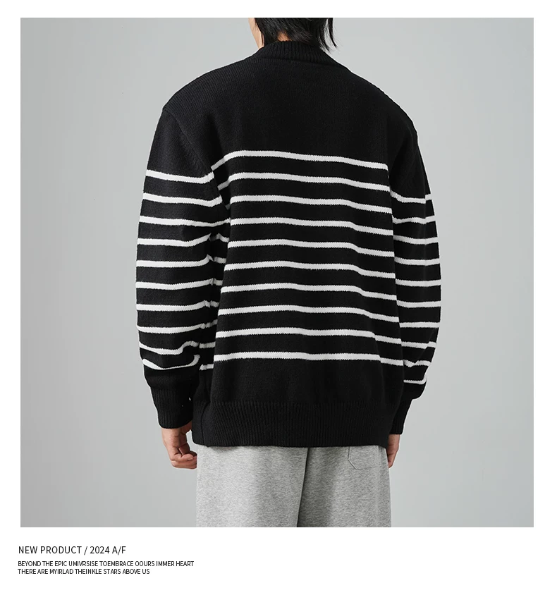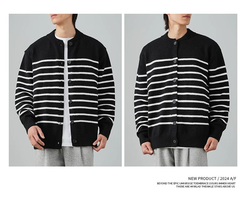 - Áo len cardigan sọc đen trắng OMZM dành cho nam mùa đông 2024, kiểu dáng rộng rãi, thoải mái, phong cách học sinh, áo khoác ấm áp