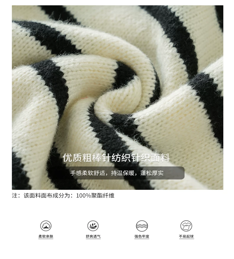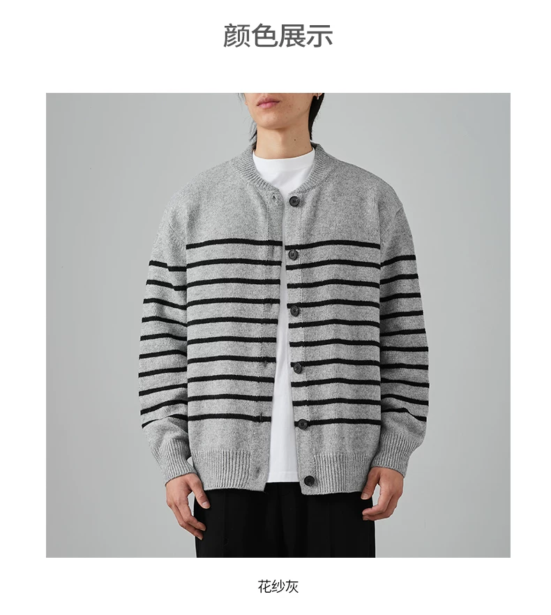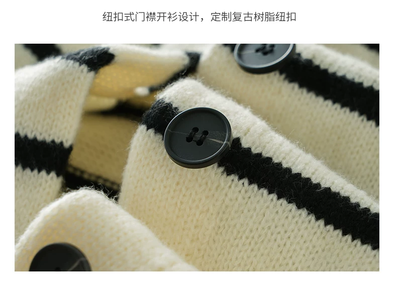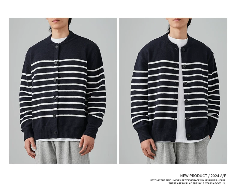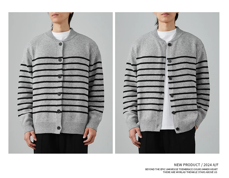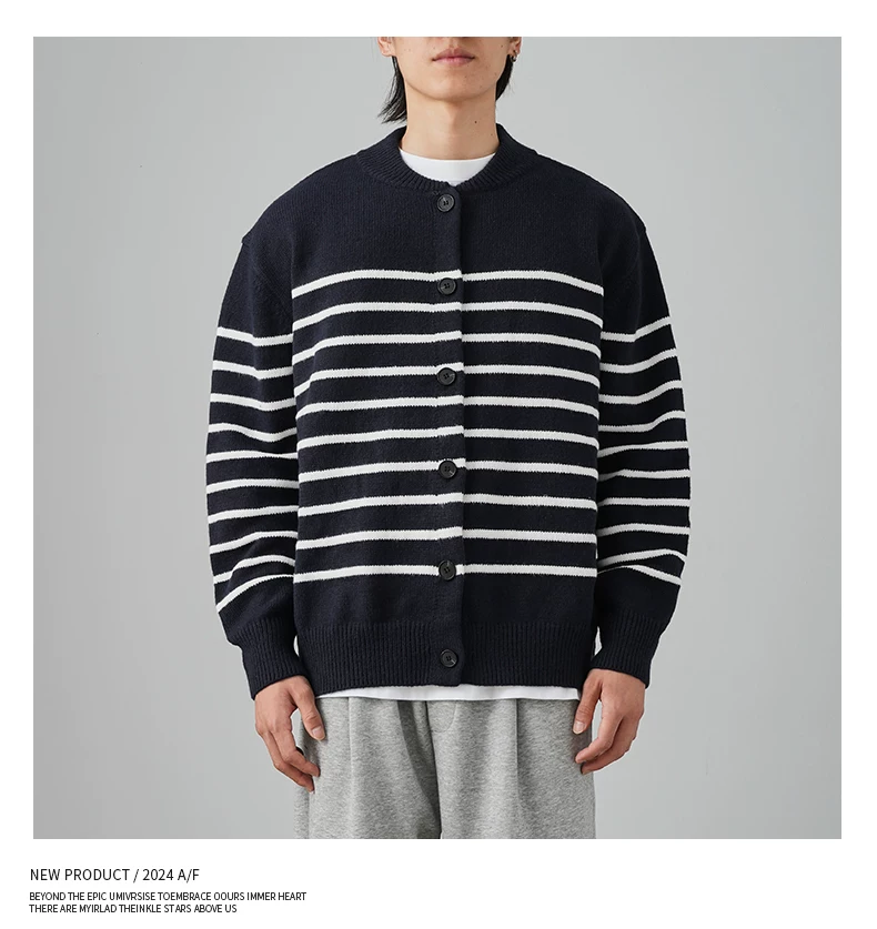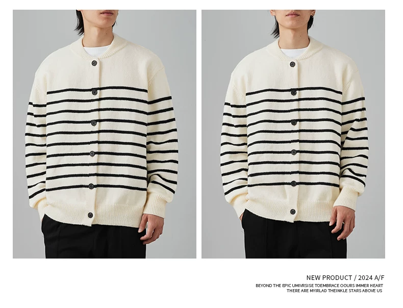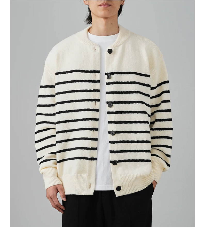 - Áo len cardigan sọc đen trắng OMZM dành cho nam mùa đông 2024, kiểu dáng rộng rãi, thoải mái, phong cách học sinh, áo khoác ấm áp