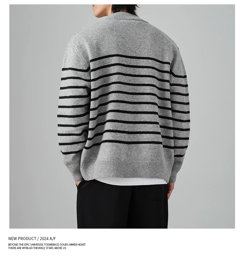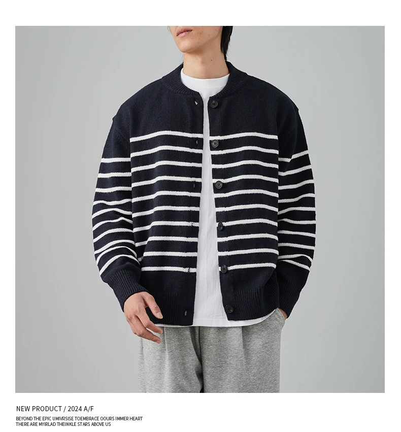 Áo len cardigan sọc đen trắng OMZM dành cho nam mùa đông 2024, kiểu dáng rộng rãi, thoải mái, phong cách học sinh, áo khoác ấm áp