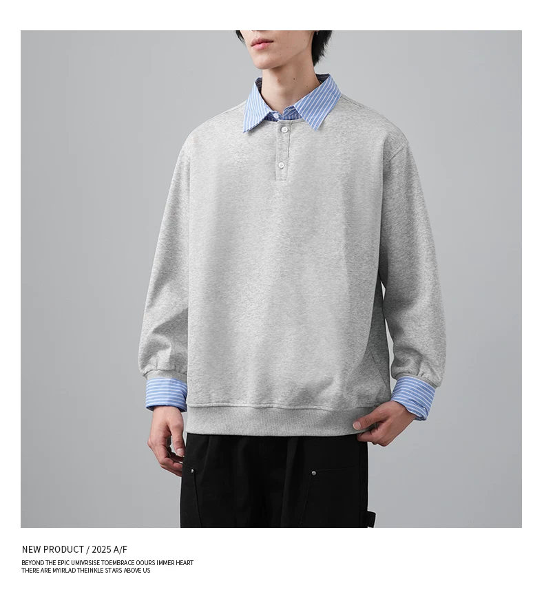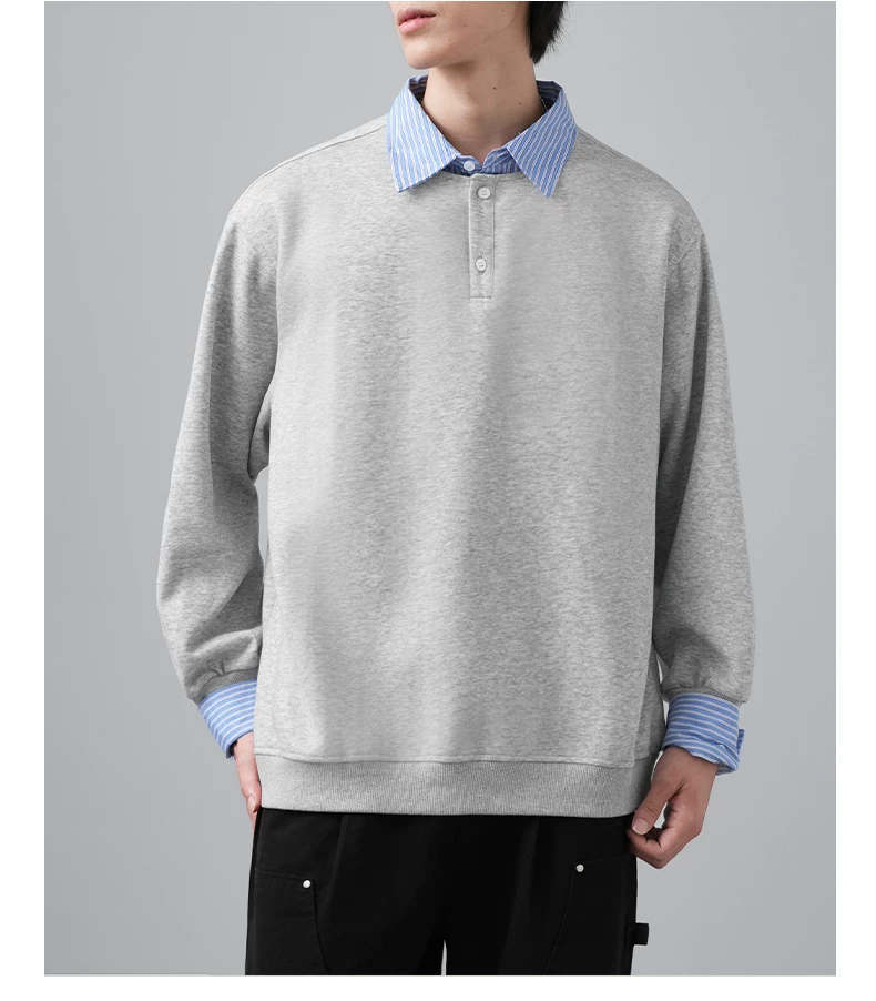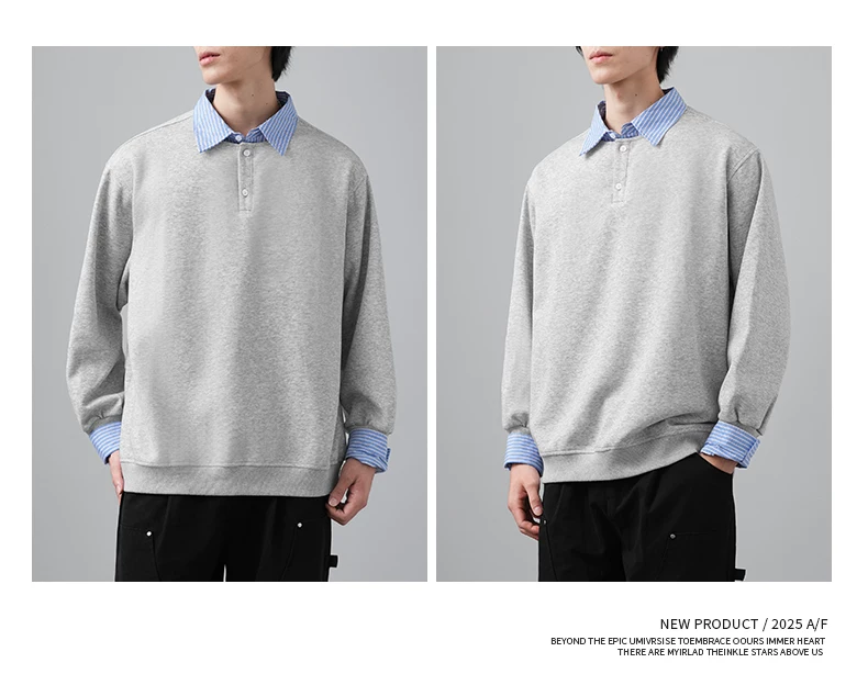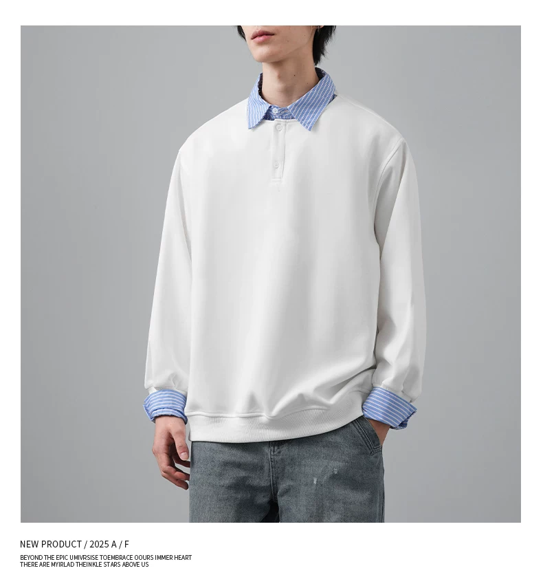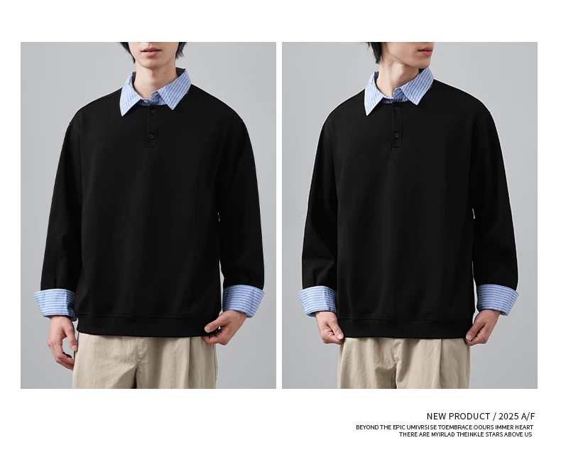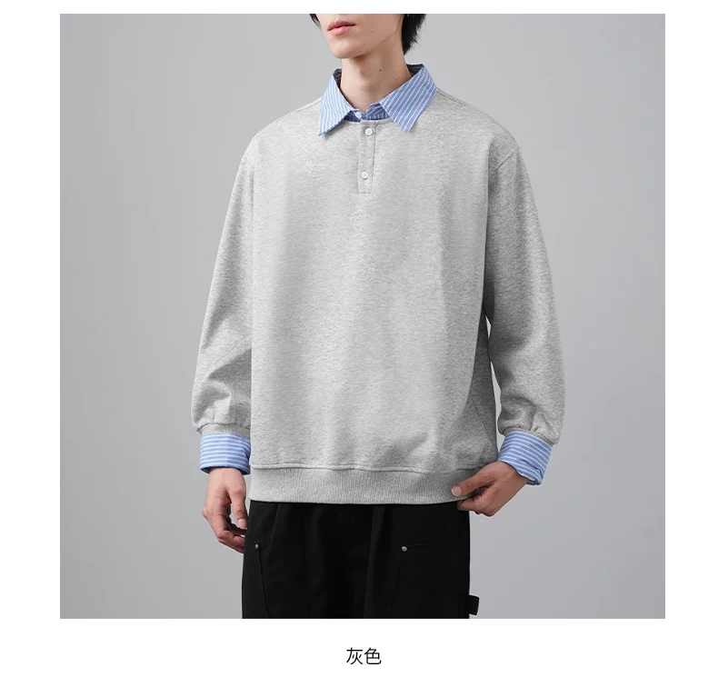 - Áo len chắp vá giả hai mảnh OMZM dành cho nam, phong cách giản dị mùa thu kiểu Mỹ, áo sơ mi dáng rộng tay dài có cổ màu sắc tương phản dành cho thanh thiếu niên