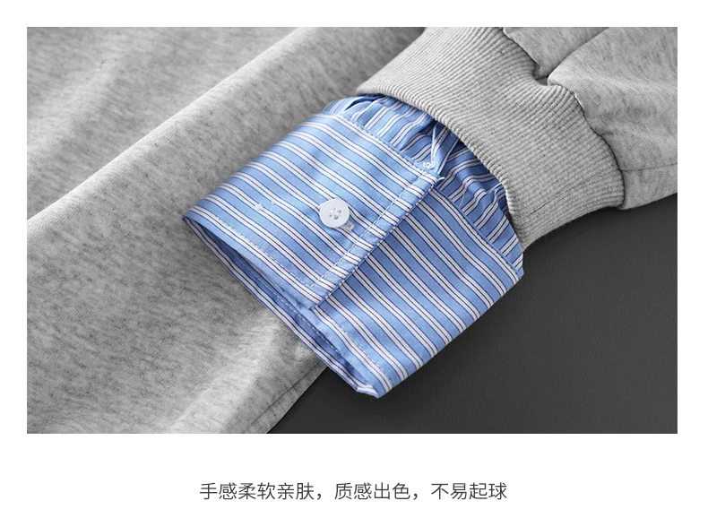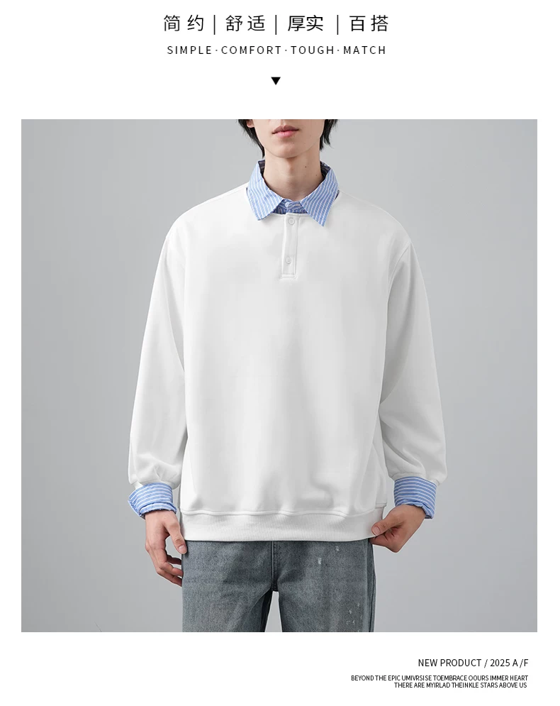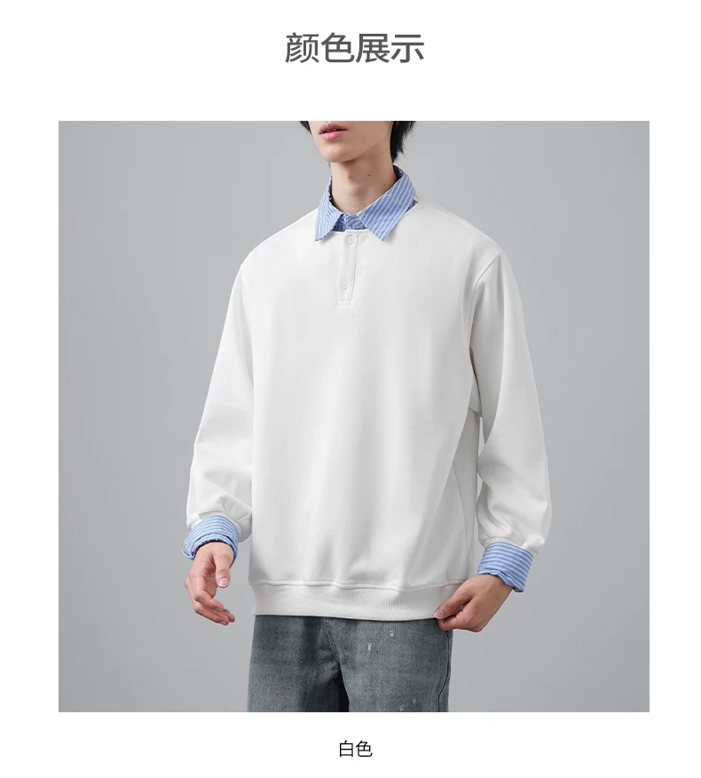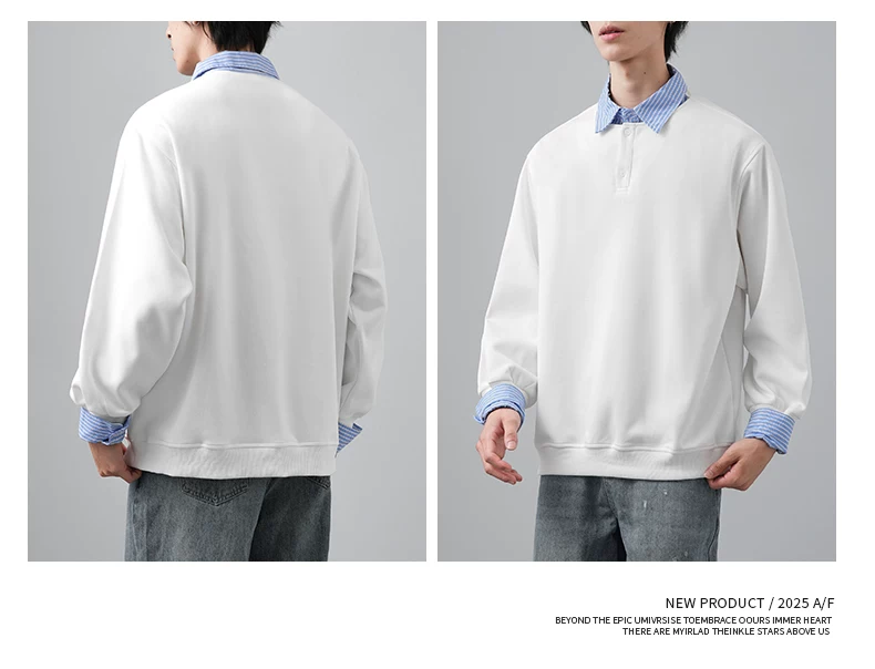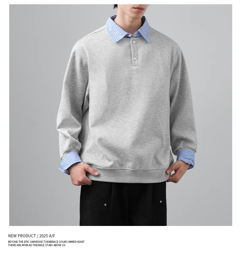 - Áo len chắp vá giả hai mảnh OMZM dành cho nam, phong cách giản dị mùa thu kiểu Mỹ, áo sơ mi dáng rộng tay dài có cổ màu sắc tương phản dành cho thanh thiếu niên