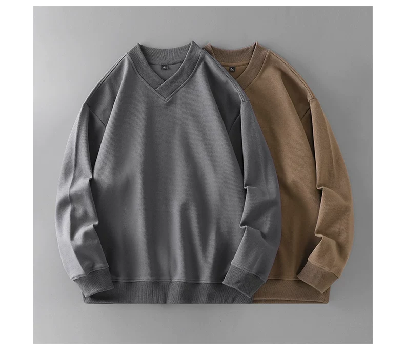 Áo len cổ chữ V hạng nặng OMZM380G dành cho bé trai, áo chui đầu dài tay lệch vai phong cách cổ điển kiểu Mỹ mùa thu