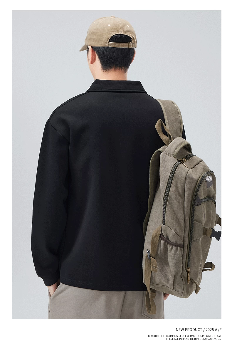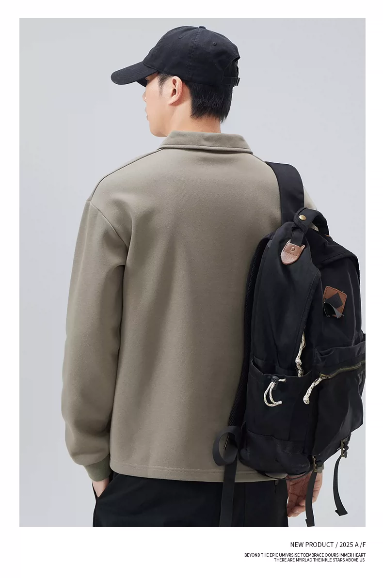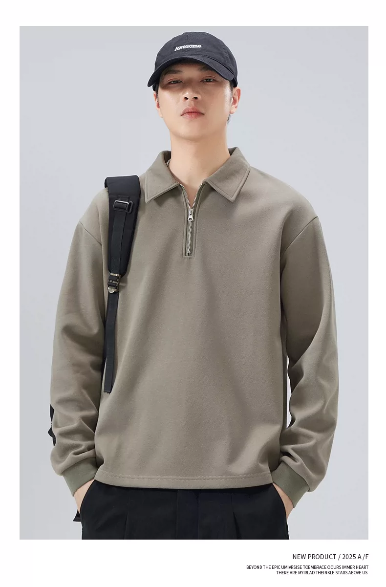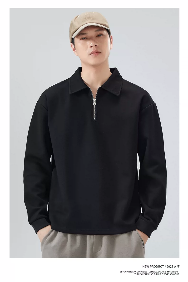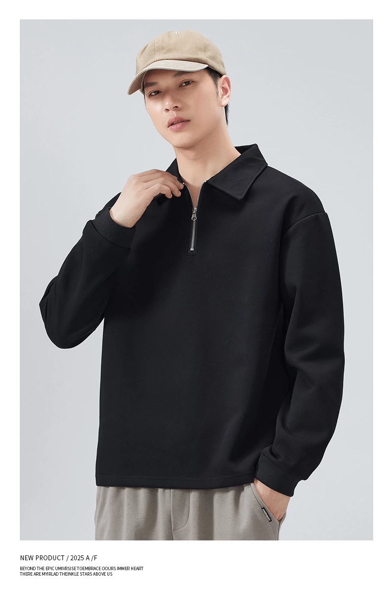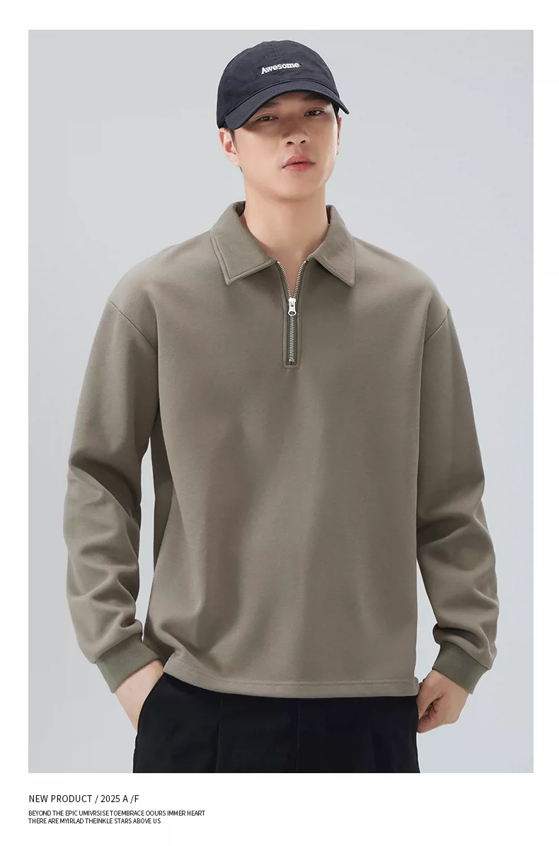 Áo len có cổ lót lông cừu OMZM dành cho nam, áo khoác cổ đứng nửa khóa kéo dày dặn ấm áp mùa đông, áo sơ mi POLO dáng rộng có cổ