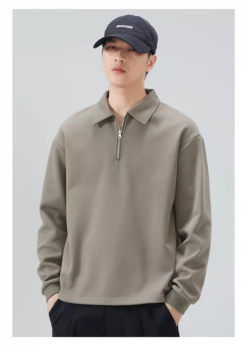 - Áo len có cổ lót lông cừu OMZM dành cho nam, áo khoác cổ đứng nửa khóa kéo dày dặn ấm áp mùa đông, áo sơ mi POLO dáng rộng có cổ