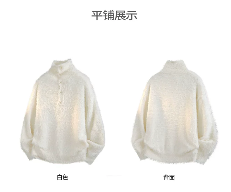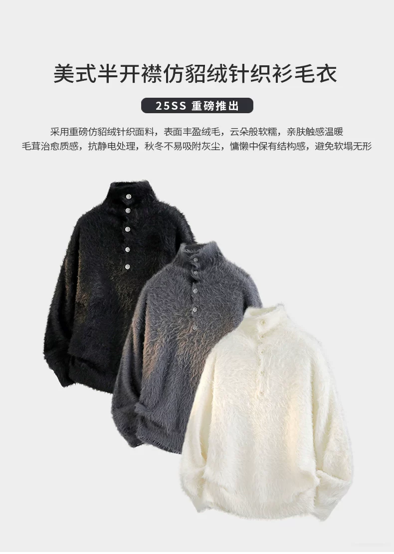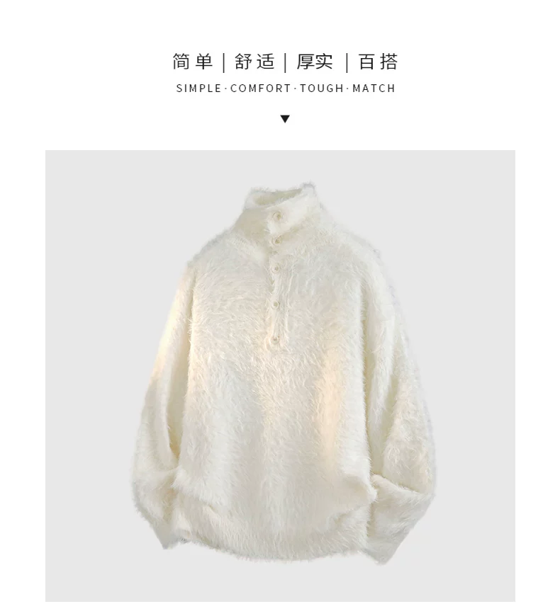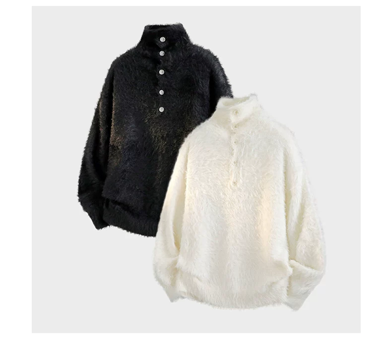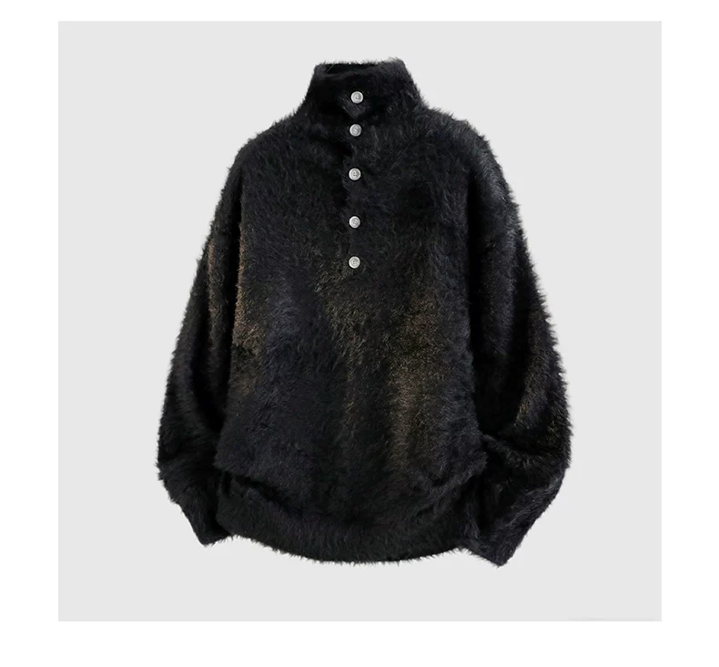 Áo len cổ lọ nửa cổ OMZM dành cho nam, áo len dài tay cao cấp mùa đông có cổ đứng cài cúc, áo khoác len dài có lớp bên trong.