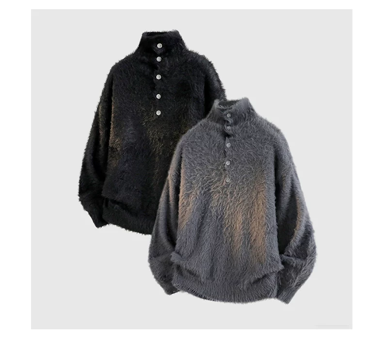 - Áo len cổ lọ nửa cổ OMZM dành cho nam, áo len dài tay cao cấp mùa đông có cổ đứng cài cúc, áo khoác len dài có lớp bên trong.