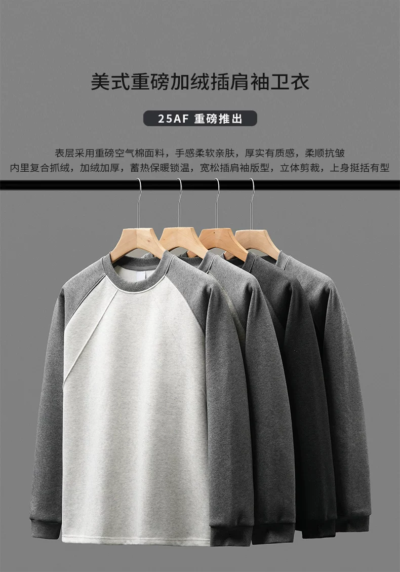 Áo len có tay raglan lót lông cừu OMZM dành cho nam, áo sơ mi lớp trong dày dặn giữ ấm mùa đông, áo khoác cleanfit kiểu Mỹ.