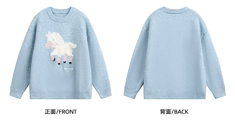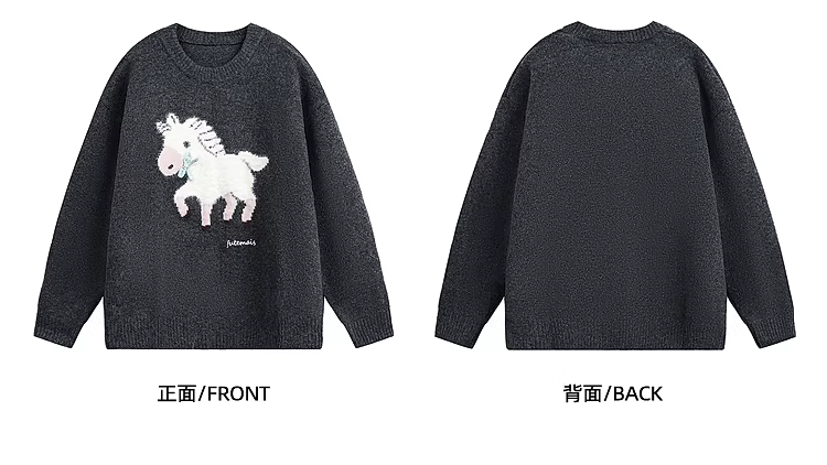 - Áo len cổ tròn họa tiết ngựa dễ thương Wukong Youhuo dành cho nam và nữ, phong cách lười biếng mùa thu đông, hàng dệt kim đa năng giảm tuổi tác.