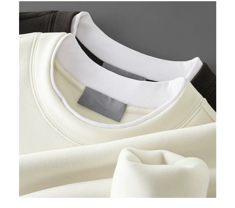 - Áo len cổ tròn lót lông cừu OMZM dành cho nam, lớp bên trong dày dặn ấm áp mùa đông, áo chui đầu đơn giản giả hai mảnh.