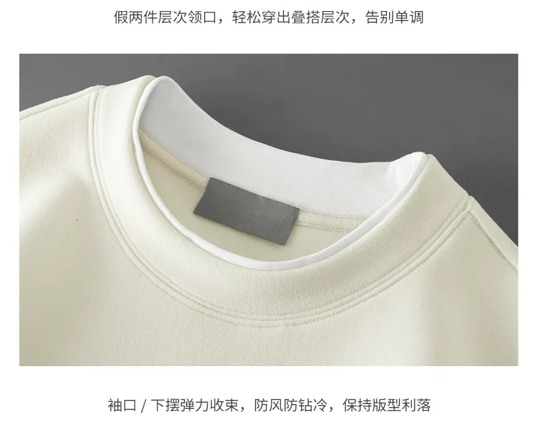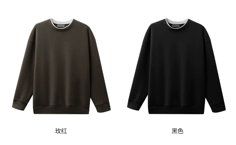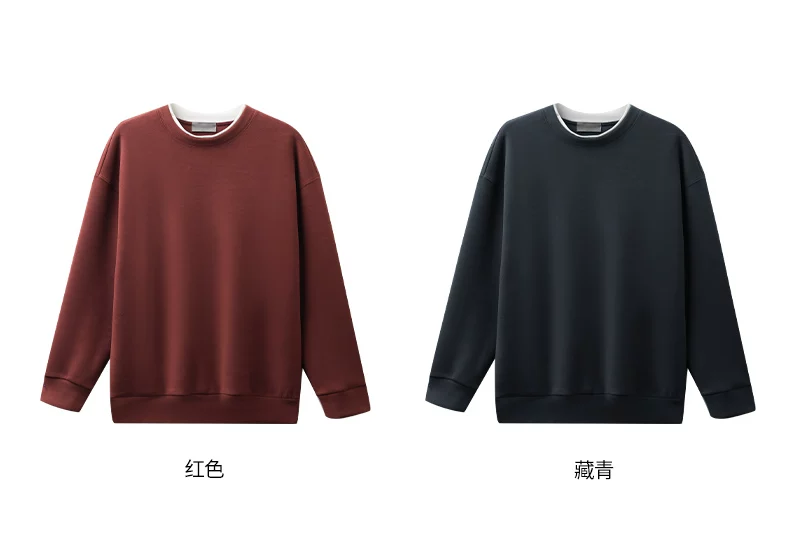 Áo len cổ tròn lót lông cừu OMZM dành cho nam, lớp bên trong dày dặn ấm áp mùa đông, áo chui đầu đơn giản giả hai mảnh.