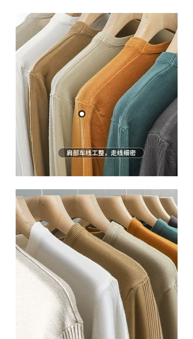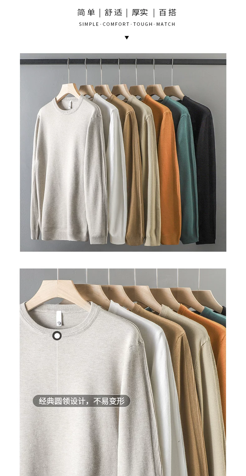 - Áo len cổ tròn màu trơn kiểu Mỹ dành cho nam, áo len dệt kim đa năng hợp thời trang thu đông mới dành cho nam.
