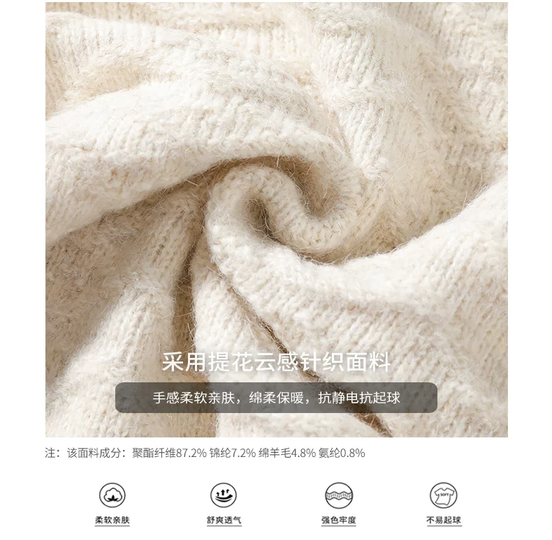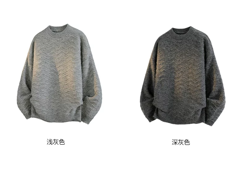 Áo len cổ tròn màu trơn OMZM dành cho nam, áo dệt kim có họa tiết cổ điển mùa đông, áo thun dáng rộng và đa năng dành cho các cặp đôi.