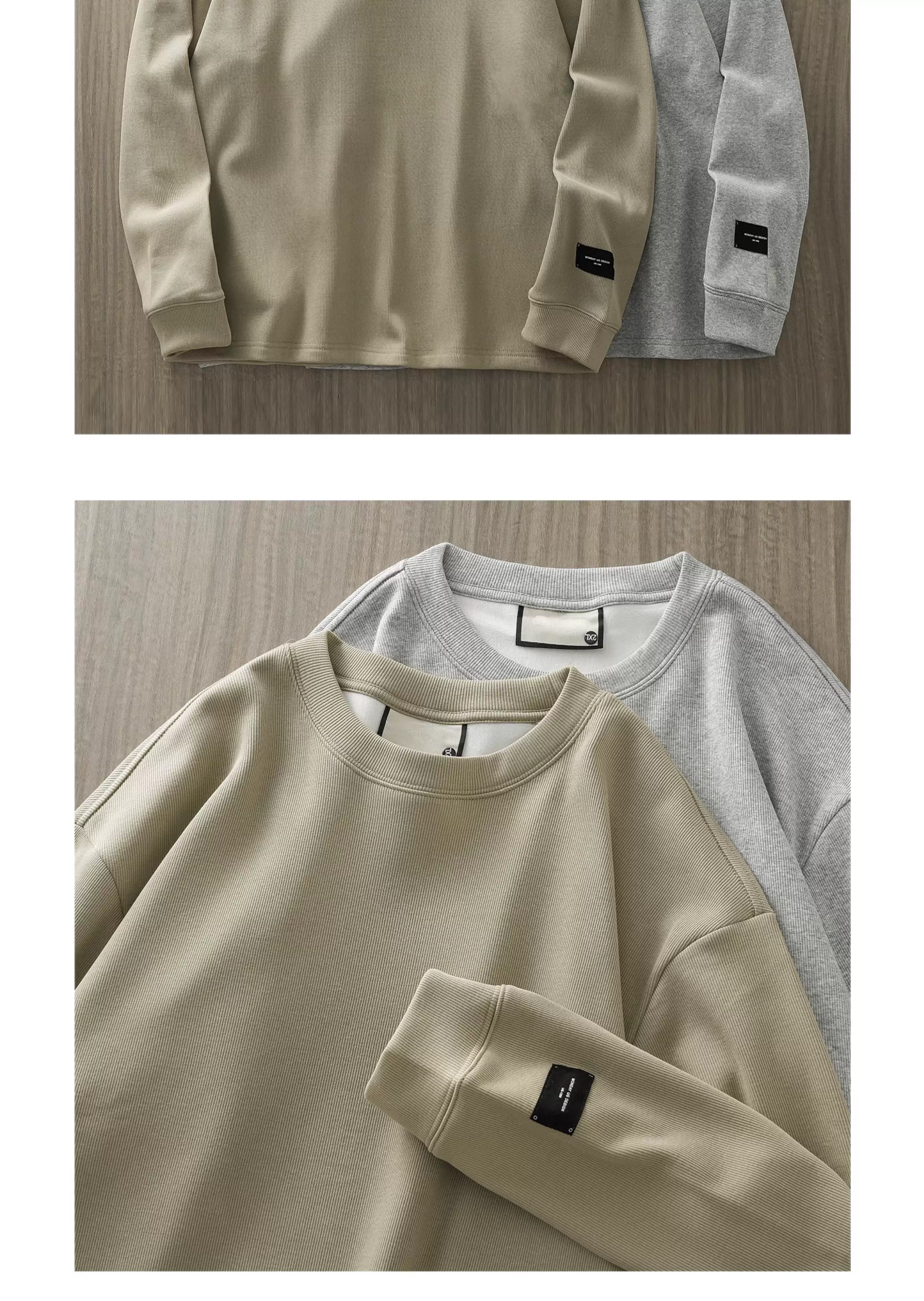 - Áo len cổ tròn nhung bạc hạng nặng OMZM400G dành cho nam, áo sơ mi dài tay màu trơn phong cách cổ điển Mỹ mùa thu đông