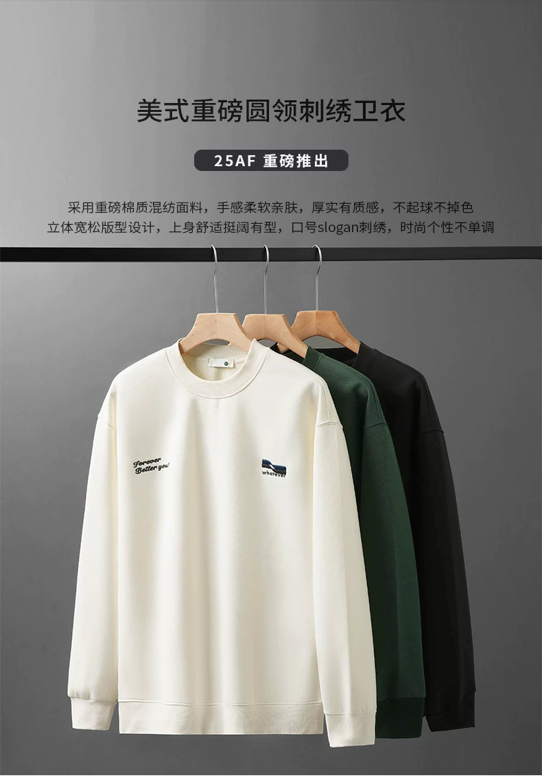 - Áo len cổ tròn thêu nặng OMZM dành cho nam, áo chui đầu dáng rộng tay dài phong cách Mỹ mùa thu, không mũ trùm đầu