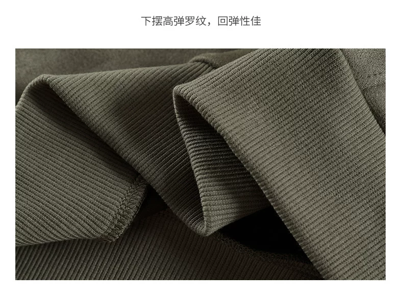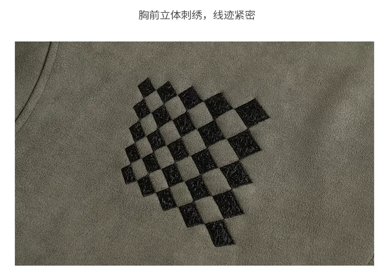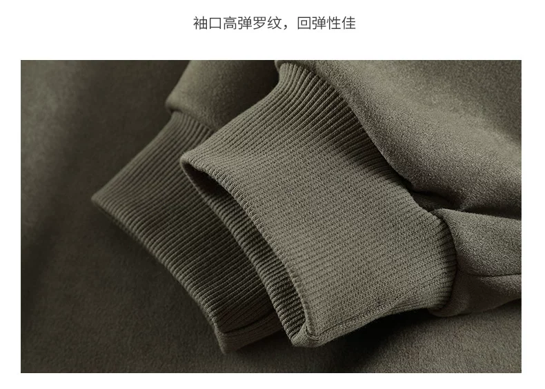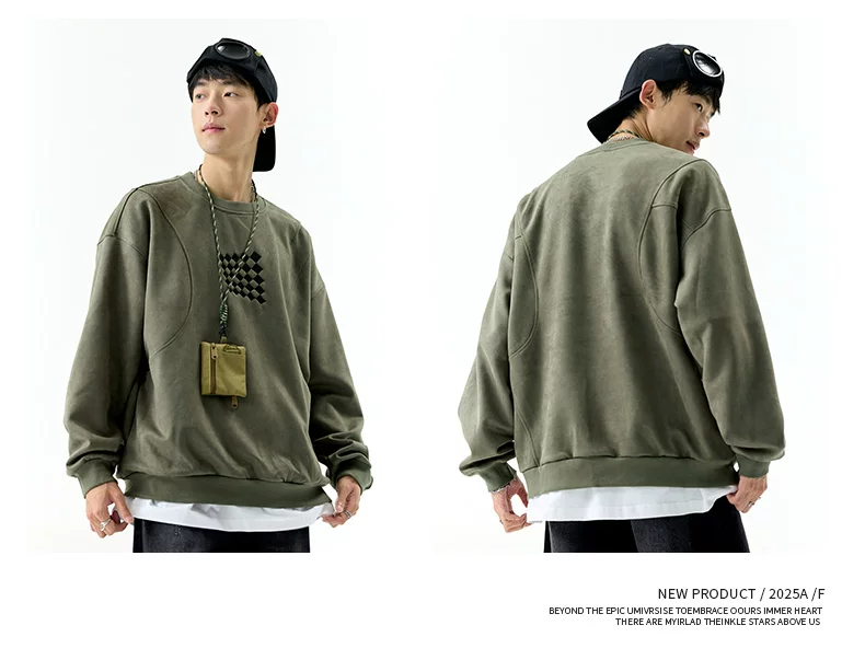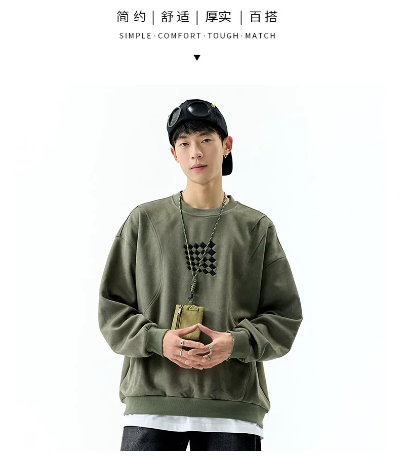 - Áo len da lộn hạng nặng OMZM380G dành cho nam, áo sơ mi dài tay cổ tròn thêu chắp vá phong cách Mỹ mùa thu