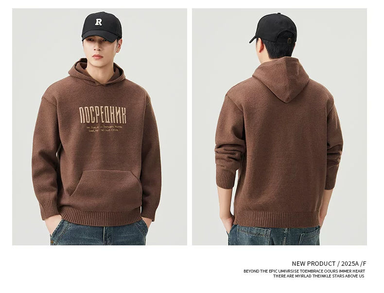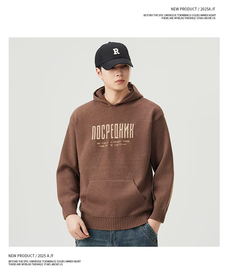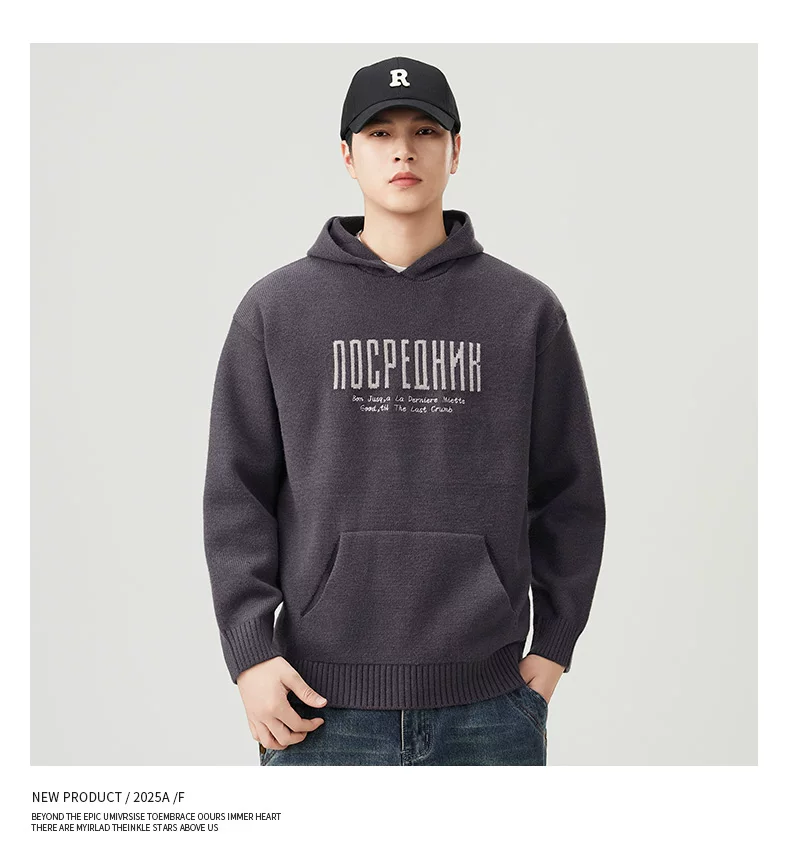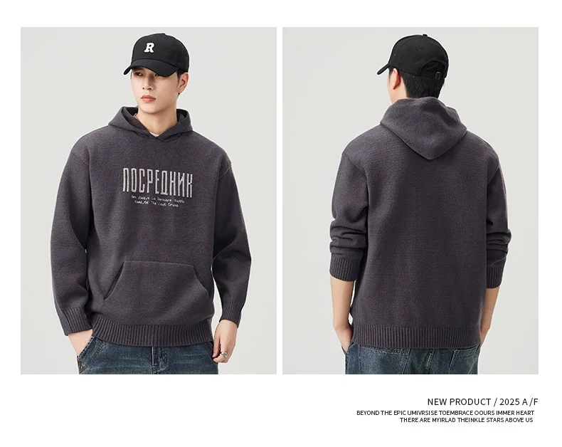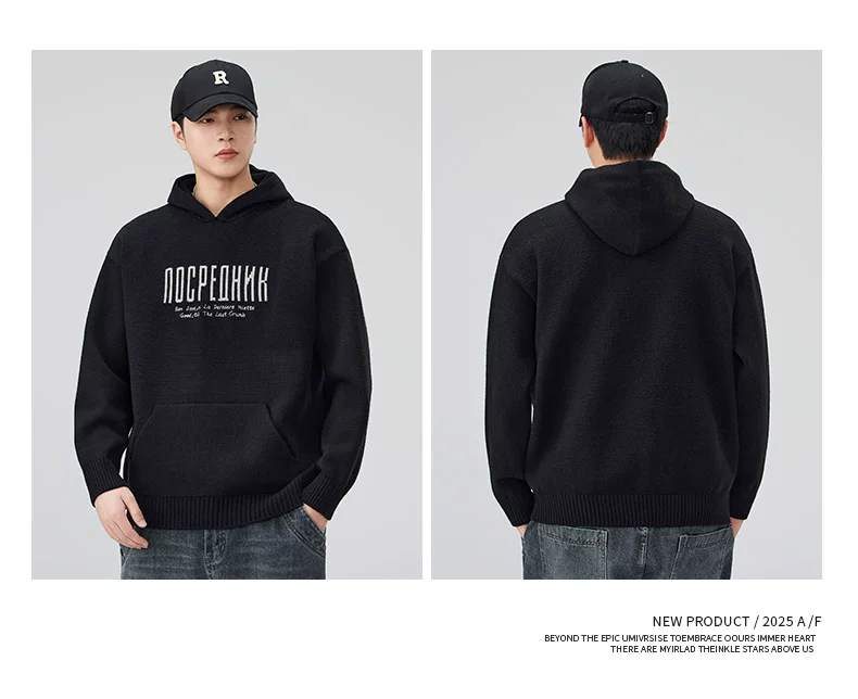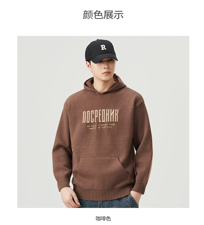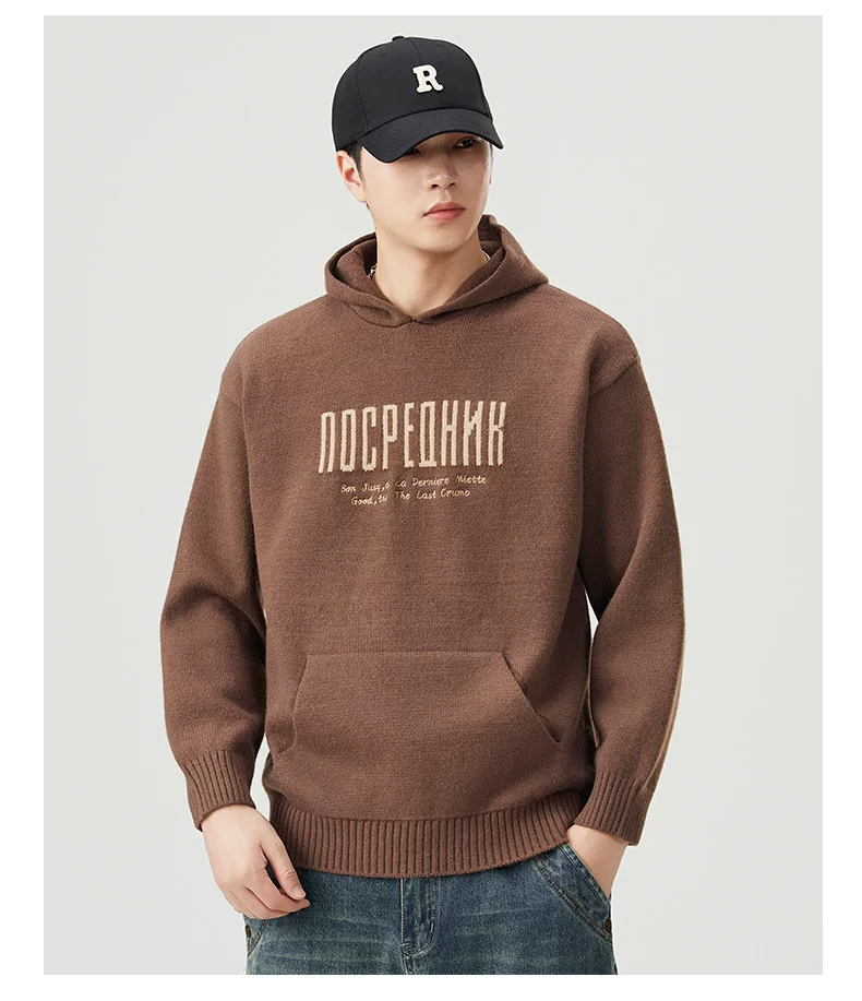 - Áo len dệt kim có mũ trùm đầu OMZM dành cho nam, áo len chui đầu in chữ nặng kiểu Mỹ mùa thu đông, áo thun chui đầu kiểu dáng lười biếng