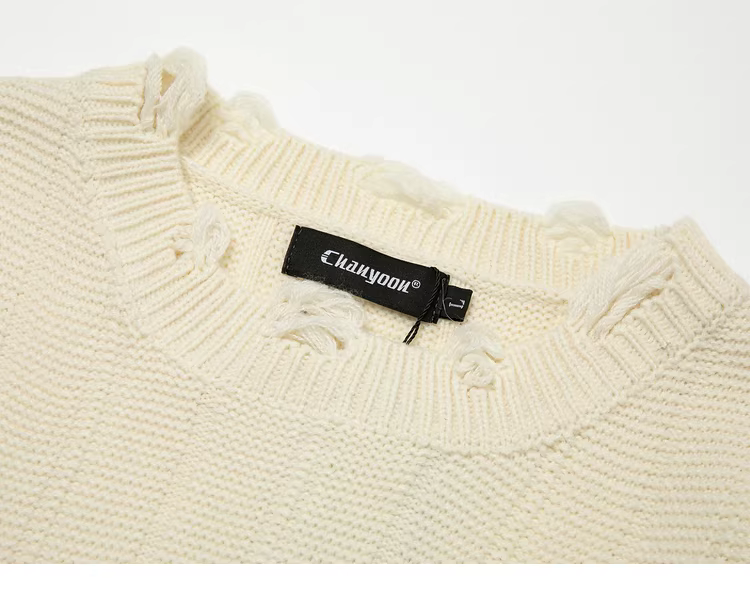 - Áo len dệt kim cổ tròn thêu chéo từ sao Hỏa, dáng rộng, đa năng, phong cách đường phố Mỹ