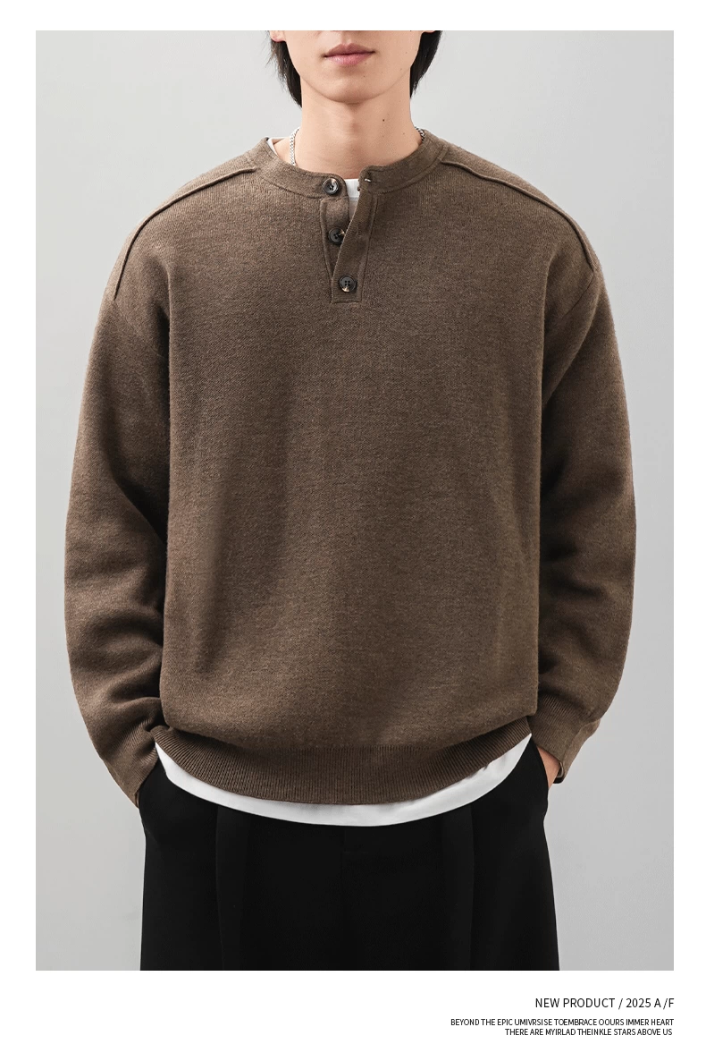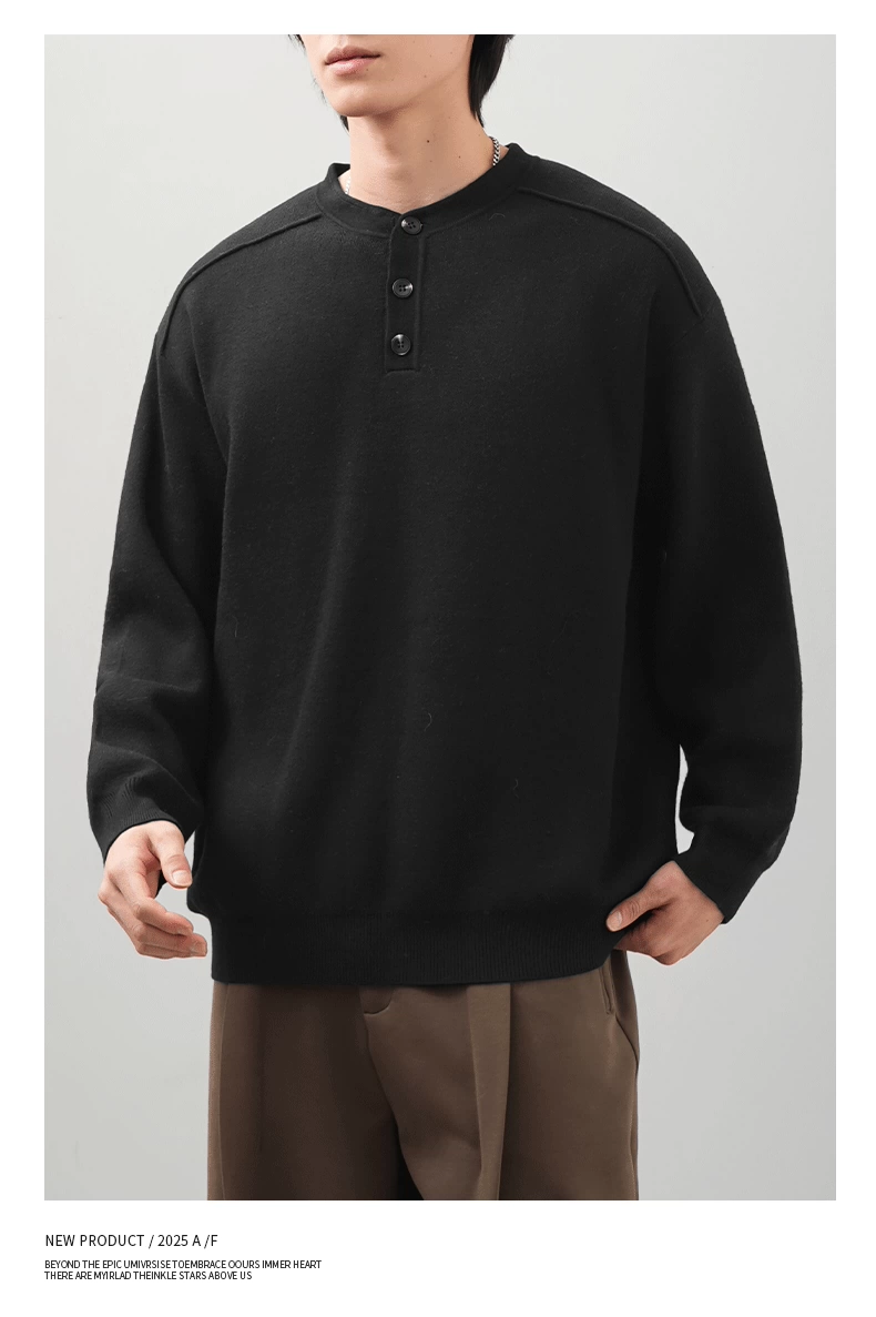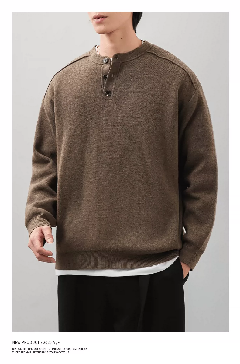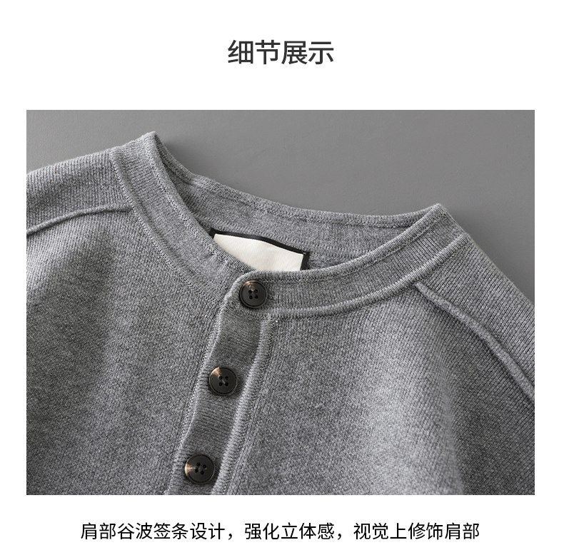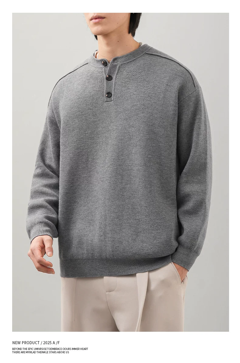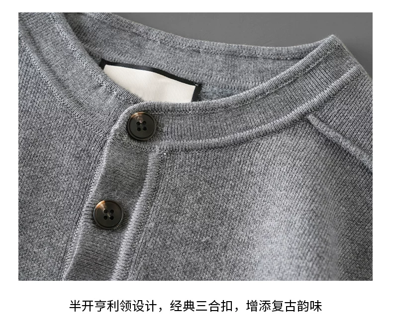 Áo len dệt kim hạng nặng OMZM680G dành cho nam, áo sơ mi lớp lót dày dặn giữ ấm mùa đông, áo len cổ Henry cổ điển kiểu Mỹ.
