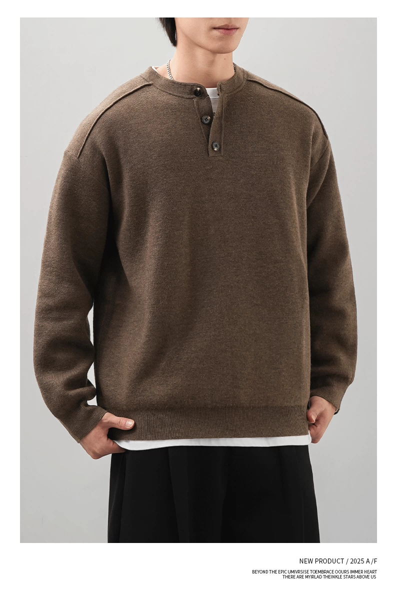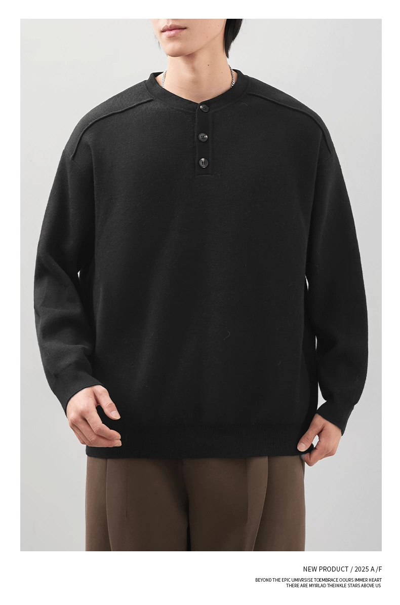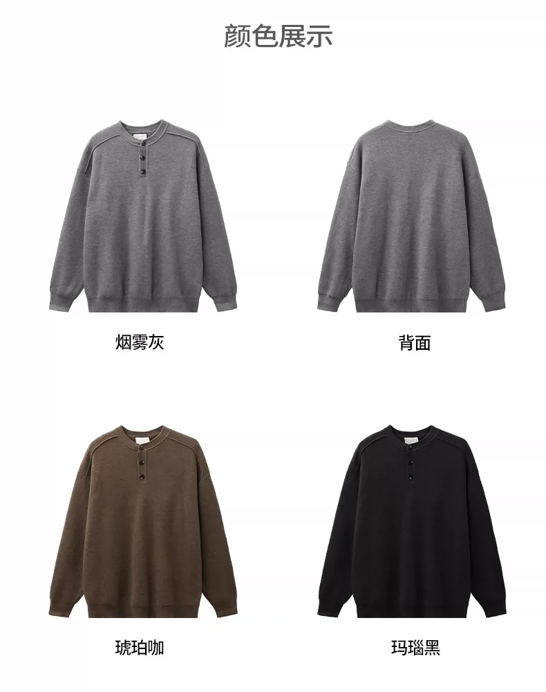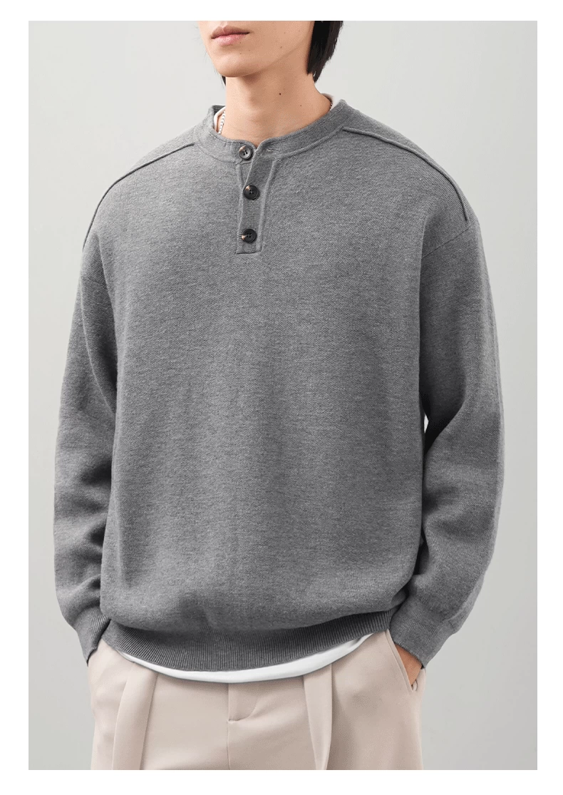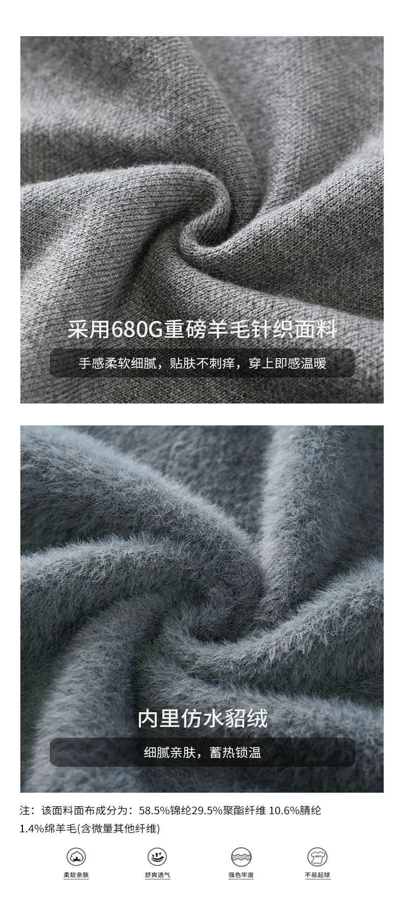 Áo len dệt kim hạng nặng OMZM680G dành cho nam, áo sơ mi lớp lót dày dặn giữ ấm mùa đông, áo len cổ Henry cổ điển kiểu Mỹ.