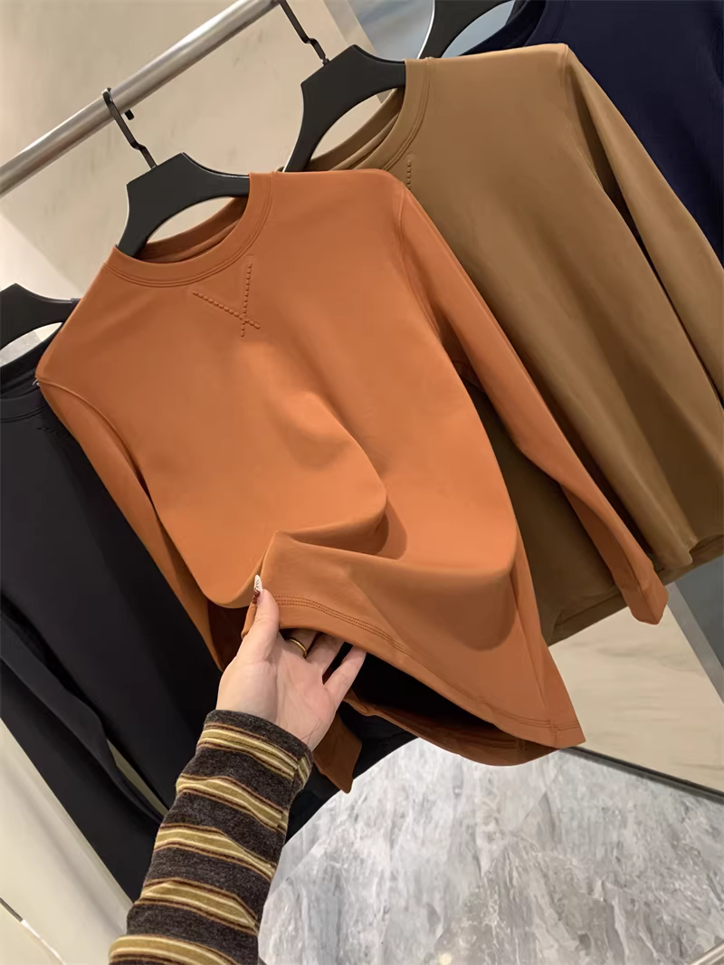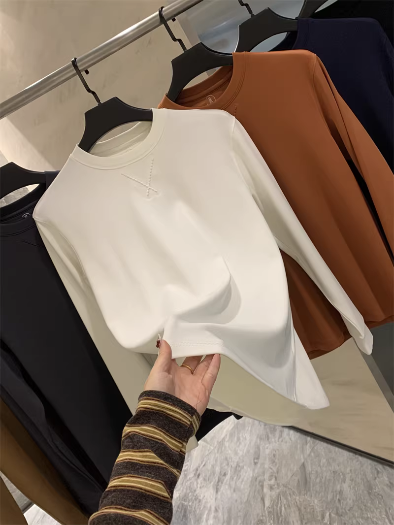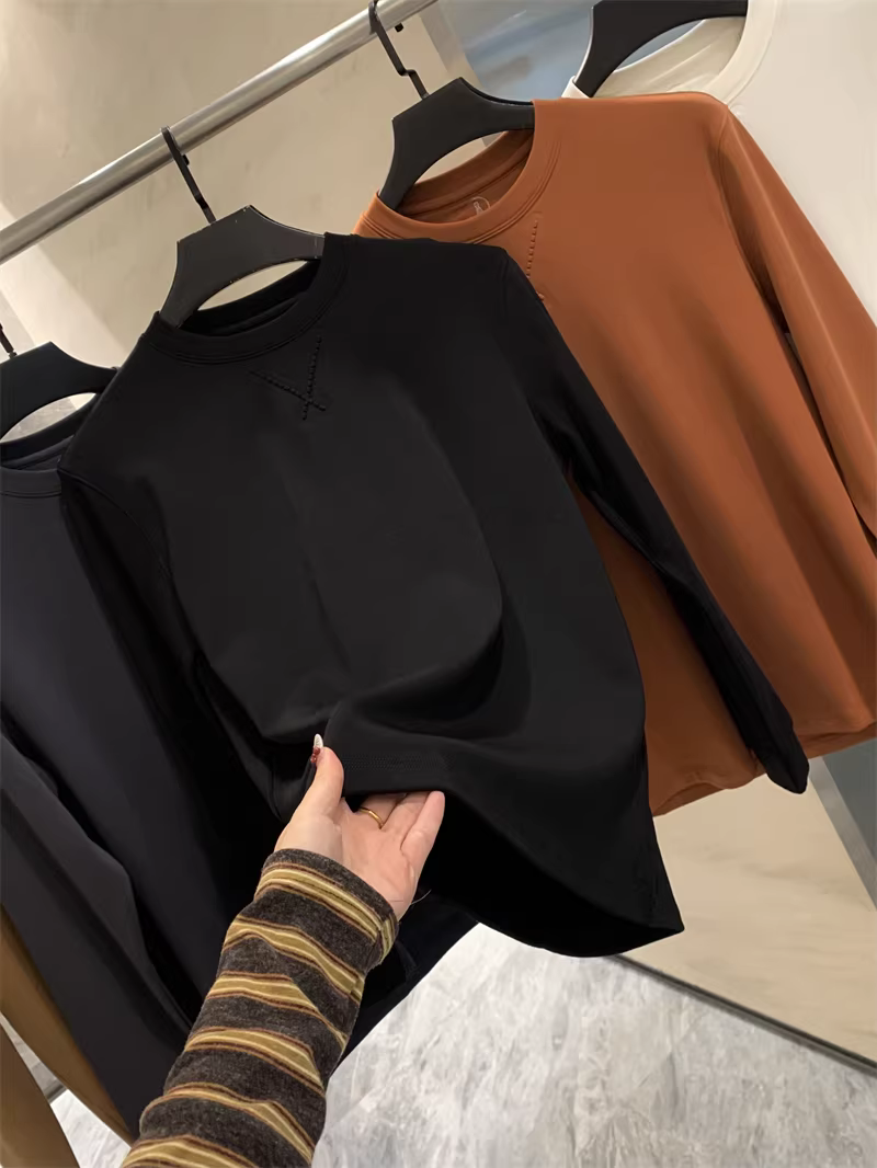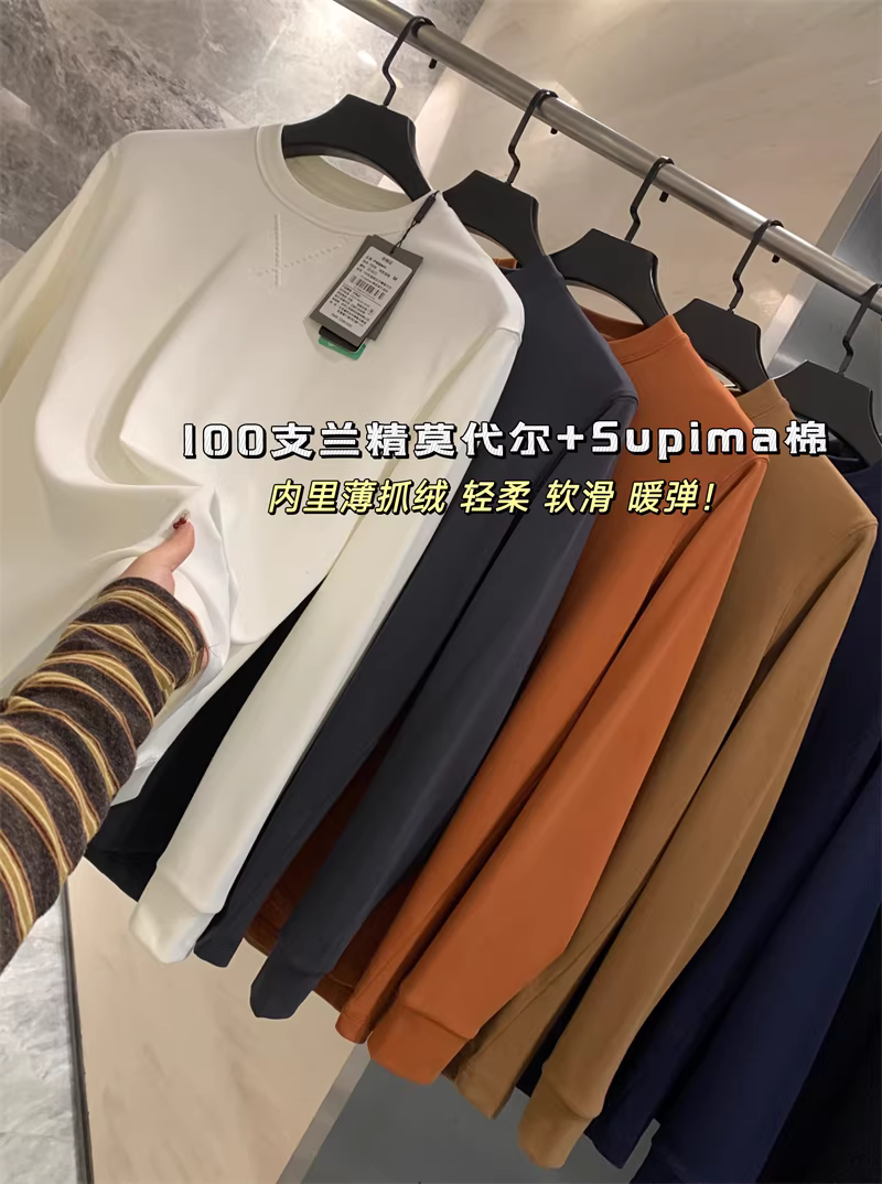 Áo len Don Quixote 100% Modal Lenzing! Áo thun dài tay lót lông cừu cổ tròn màu trơn mùa đông