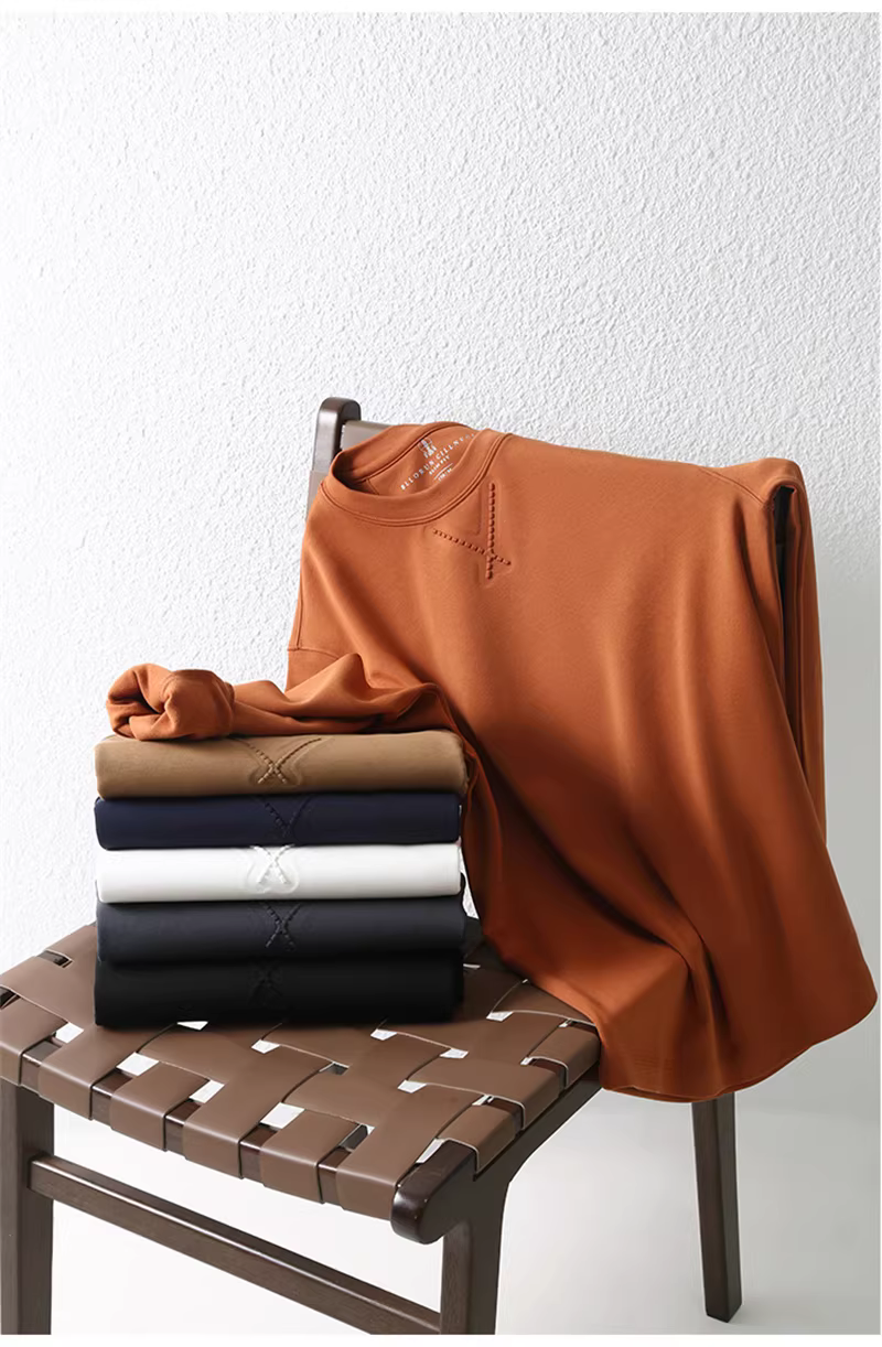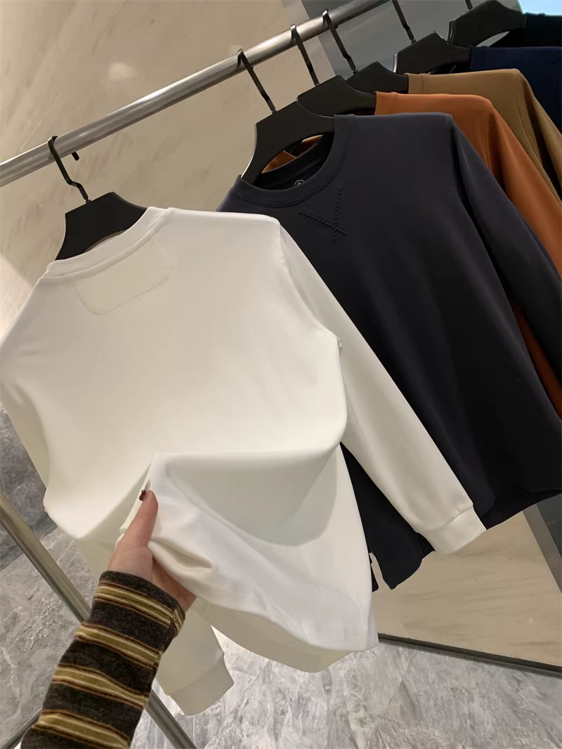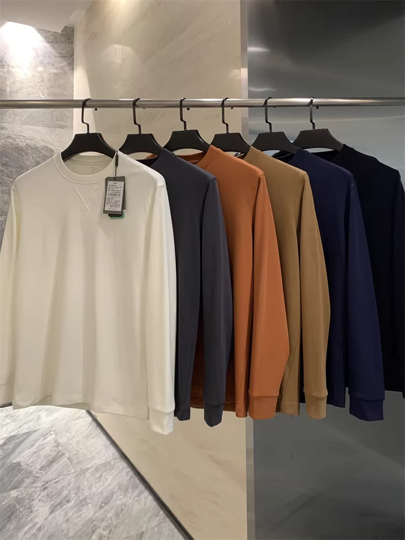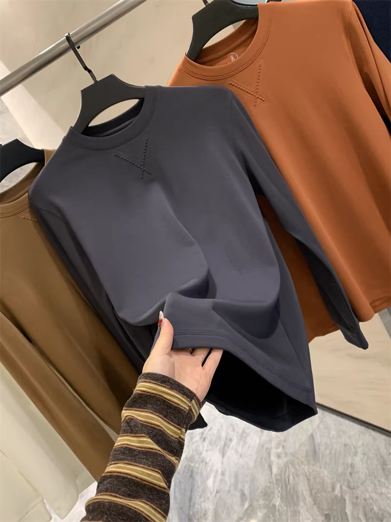 Áo len Don Quixote 100% Modal Lenzing! Áo thun dài tay lót lông cừu cổ tròn màu trơn mùa đông