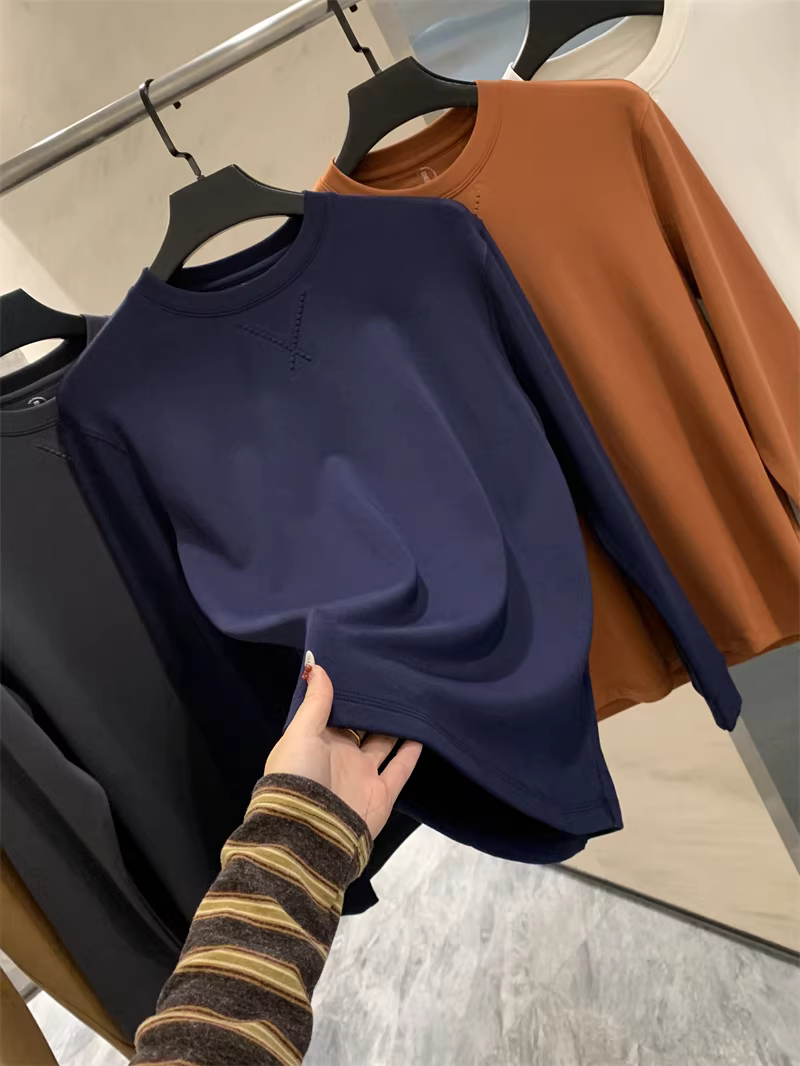 - Áo len Don Quixote 100% Modal Lenzing! Áo thun dài tay lót lông cừu cổ tròn màu trơn mùa đông
