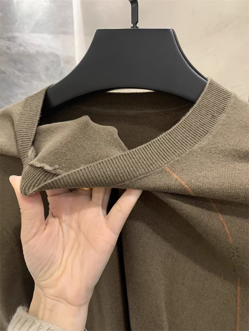 Áo len Don Quixote dệt kim mịn, thoáng khí và thân thiện với làn da! Áo len chui đầu cổ tròn đa năng, phong cách thường ngày dành cho nam giới trong mùa xuân và mùa thu.