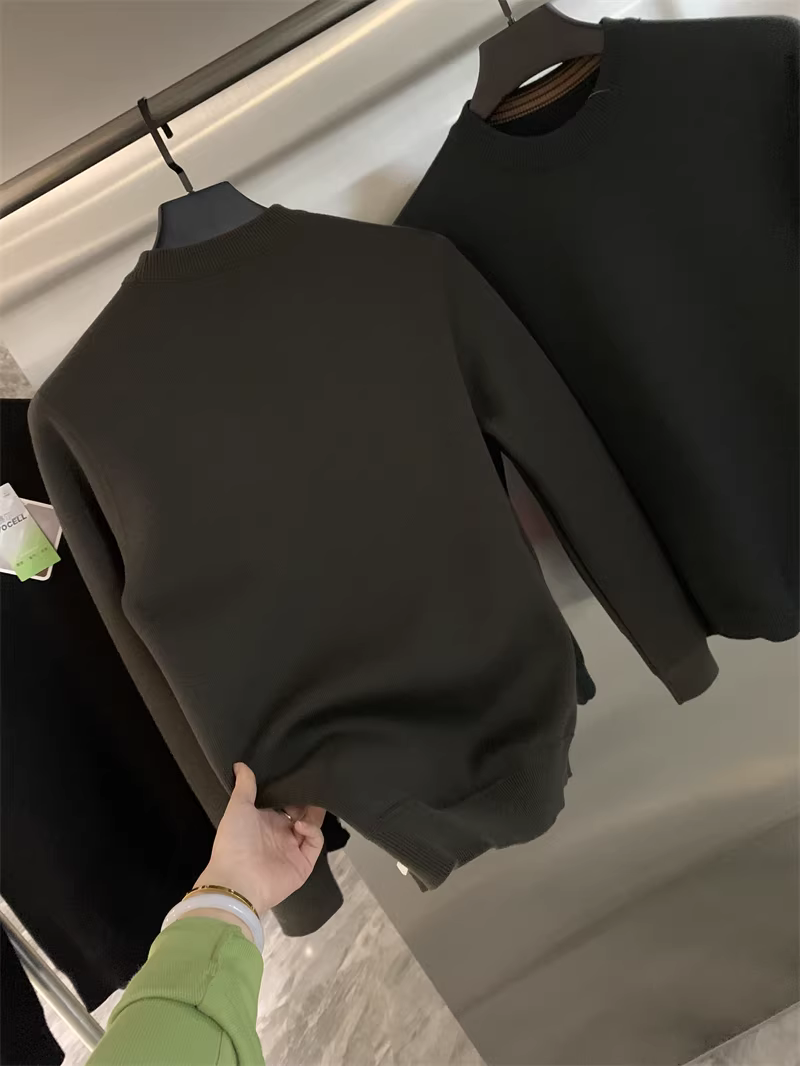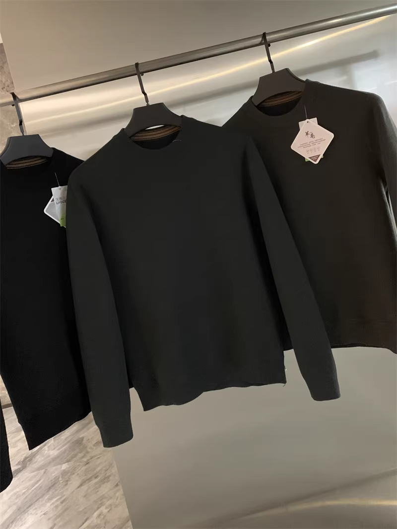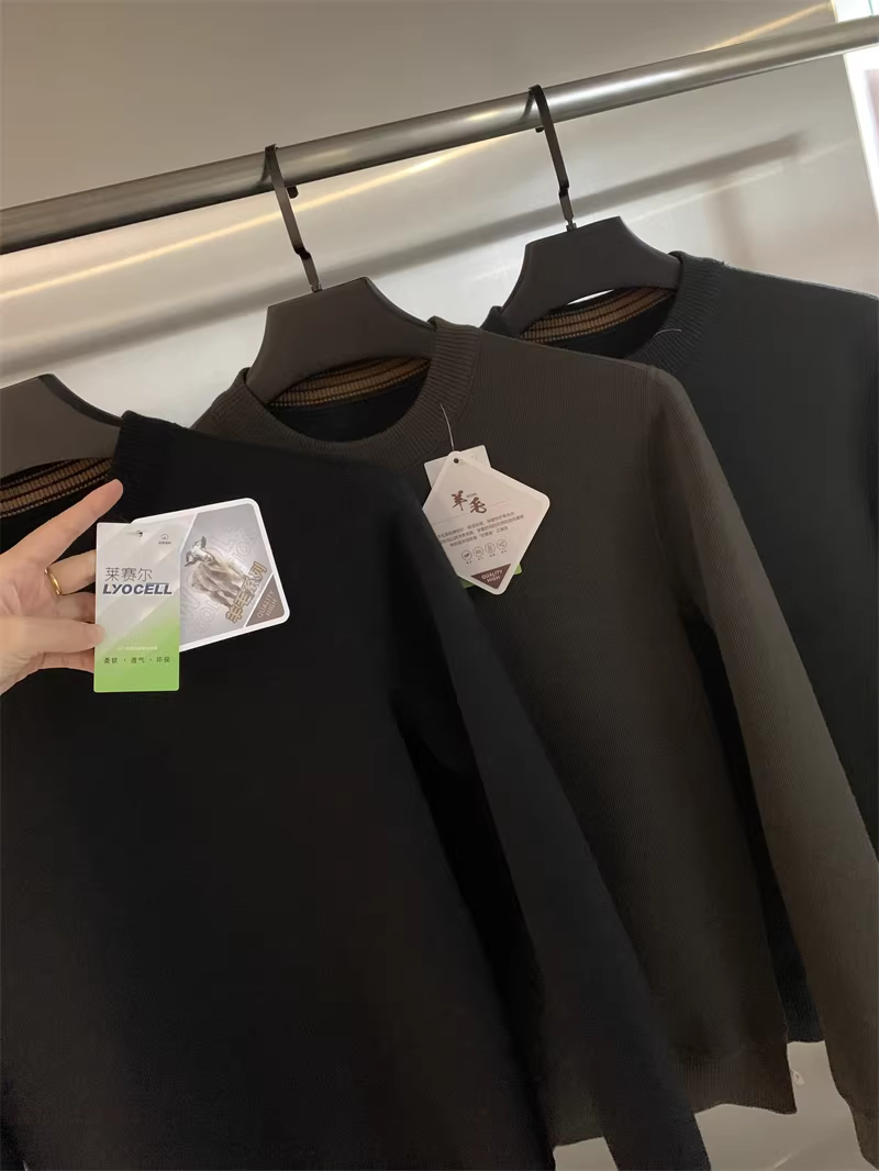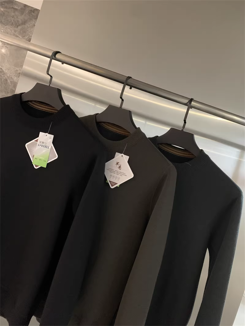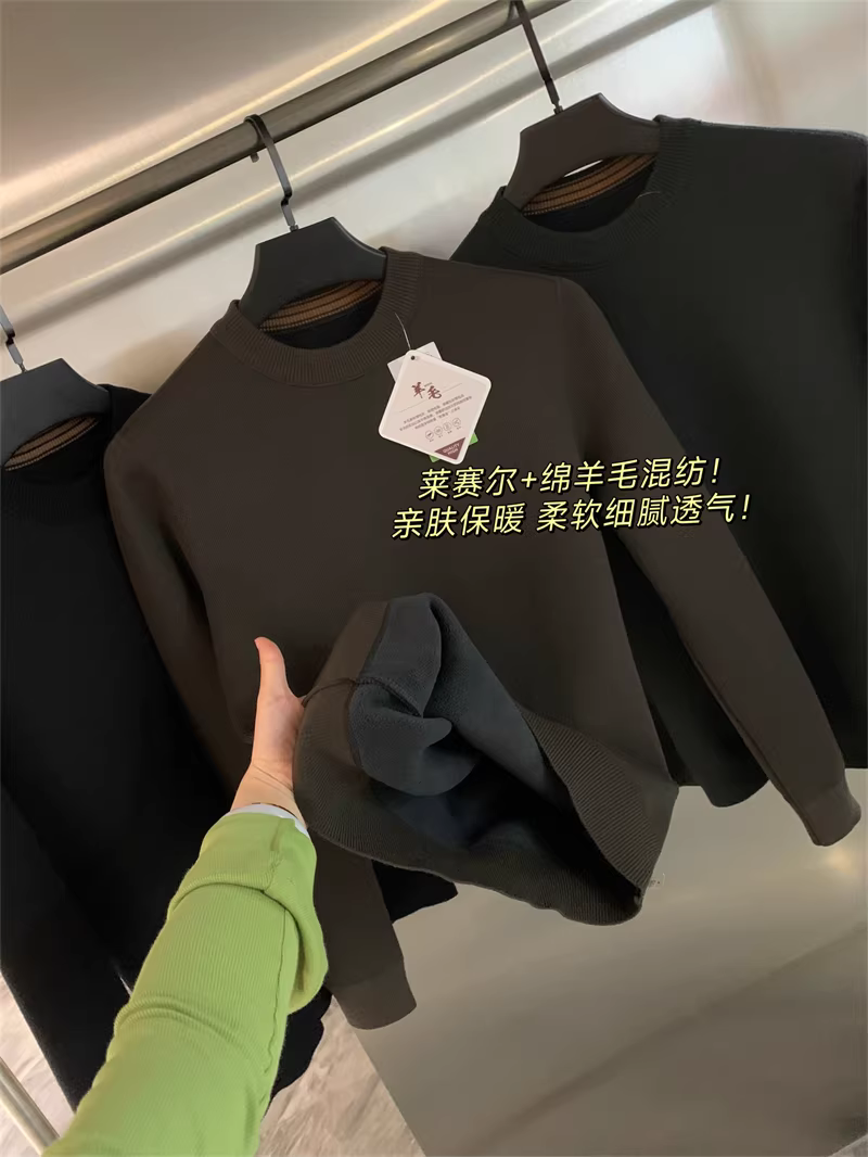 Áo len Don Quixote + Lyocell! Áo len nam cổ tròn dày dặn, lót lông cừu, màu trơn, kiểu dáng thẳng, hợp thời trang mùa thu đông
